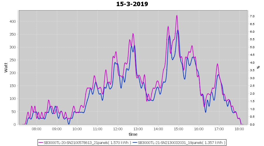 | 15-3-2019 | kWh | Sum | W/Wp | 2.927 | 6000 | 0.5 | 1.354 | € 1.05 | 0.5 |