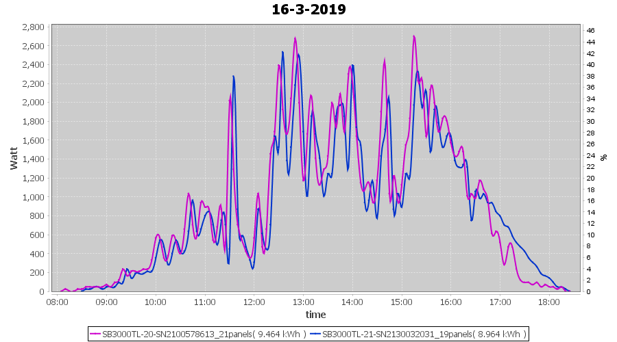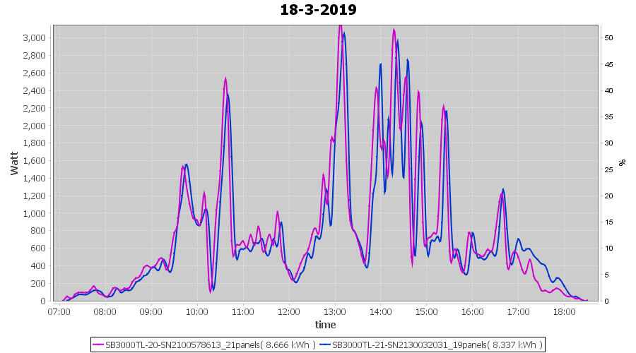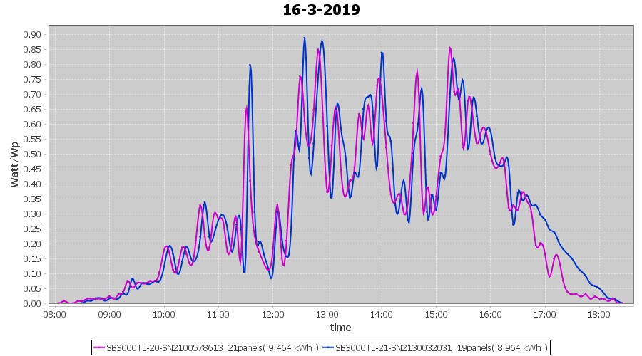 | 16-3-2019 | kWh | Sum | W/Wp | 18.428 | 6000 | 3.1 | 8.523 | € 6.61 | 2.9 |