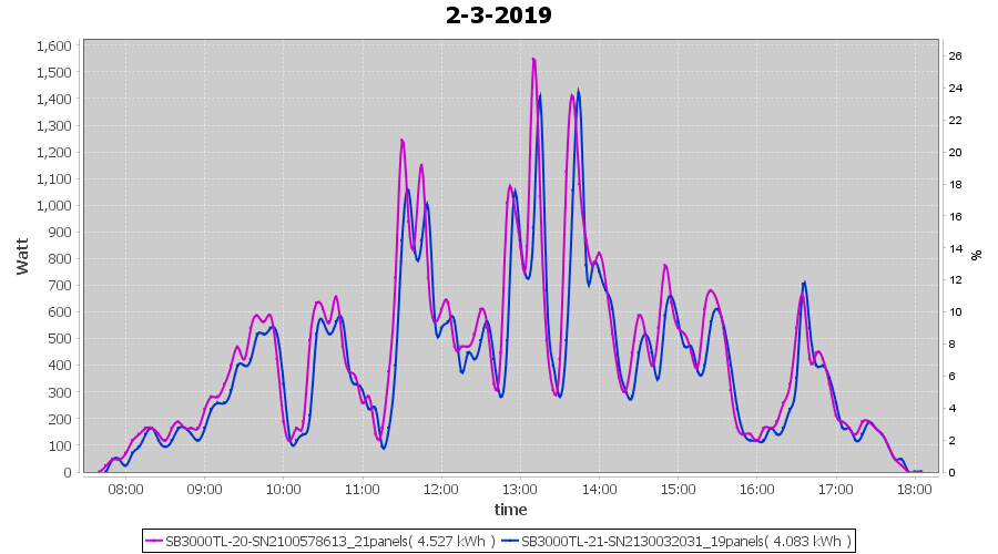 | 2-3-2019 | kWh | Sum | W/Wp | 8.610 | 6000 | 1.4 | 3.982 | € 3.09 | 1.4 |