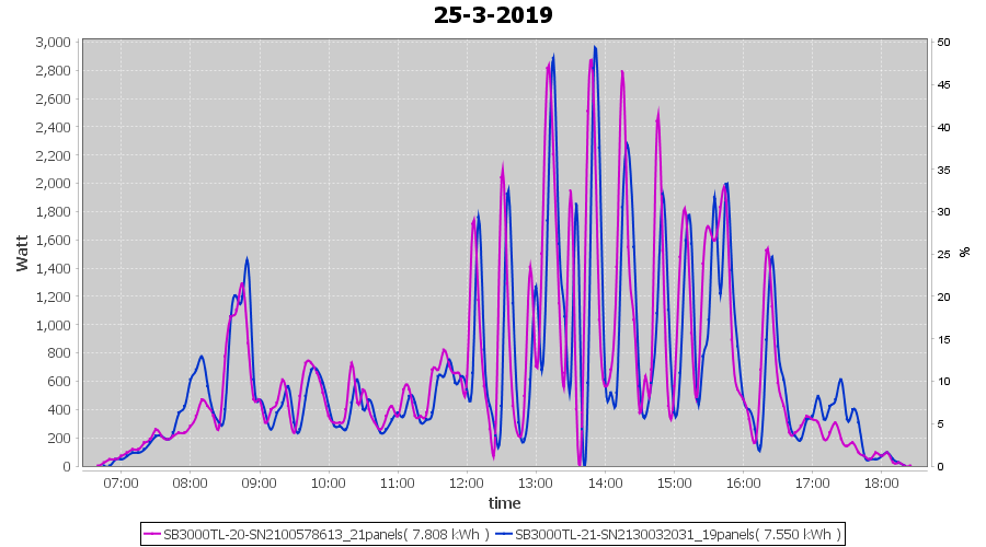 | 25-3-2019 | kWh | Sum | W/Wp | 15.358 | 6000 | 2.6 | 7.103 | € 5.51 | 2.4 |