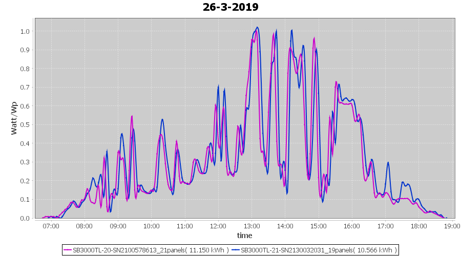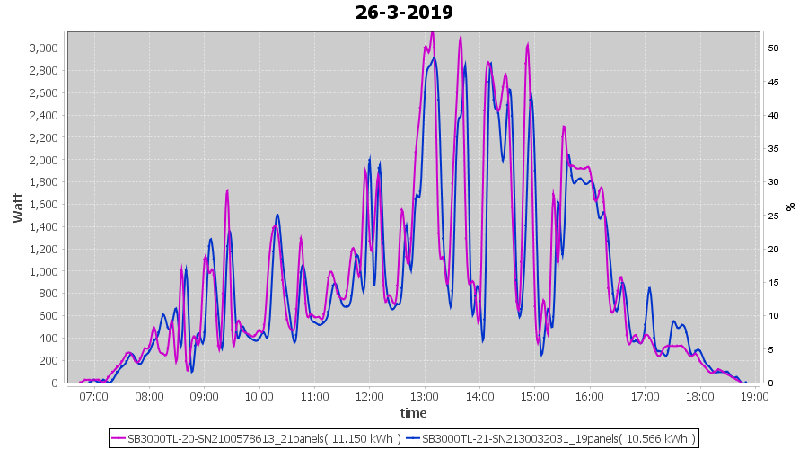 | 26-3-2019 | kWh | Sum | W/Wp | 21.716 | 6000 | 3.6 | 10.044 | € 7.79 | 3.4 |