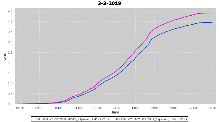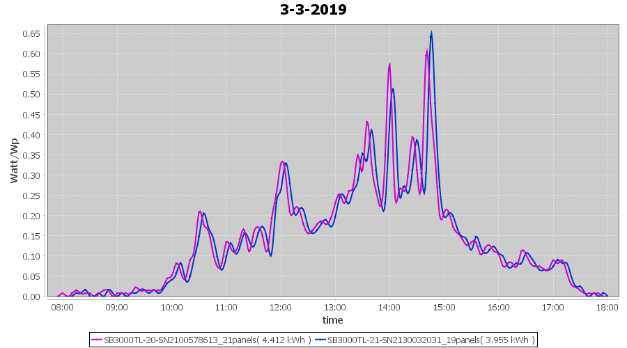 | 3-3-2019 | kWh | Sum | W/Wp | 8.367 | 6000 | 1.4 | 3.870 | € 3.00 | 1.3 |