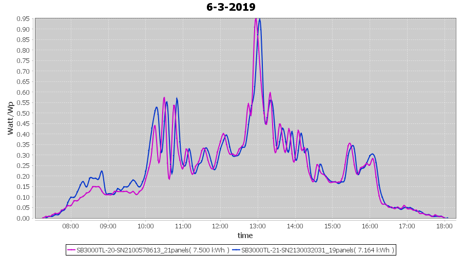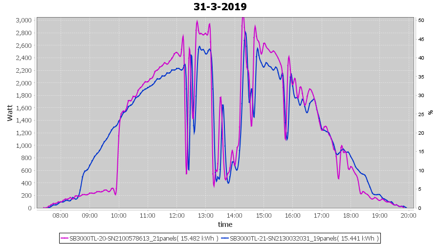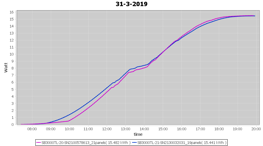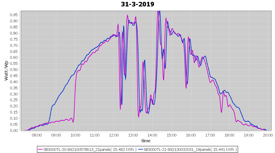 | 20-3-2019 | kWh | Sum | W/Wp | 35.925 | 6000 | 6.0 | 16.615 | € 12.89 | 5.7 |