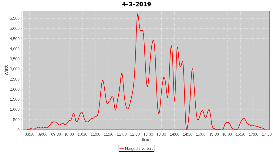 | 4-3-2019 | kWh | Sum | W/Wp | 10.593 | 6000 | 1.8 | 4.899 | € 3.80 | 1.7 |