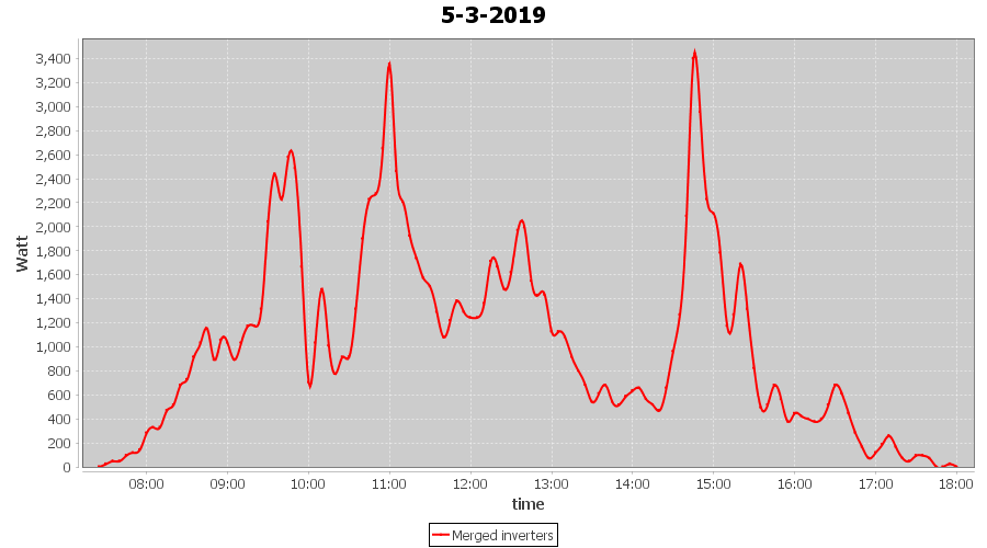 | 5-3-2019 | kWh | Sum | W/Wp | 10.833 | 6000 | 1.8 | 5.010 | € 3.89 | 1.7 |