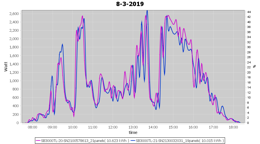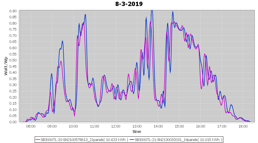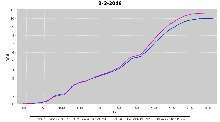 | 8-3-2019 | kWh | Sum | W/Wp | 20.638 | 6000 | 3.4 | 9.545 | € 7.41 | 3.2 |