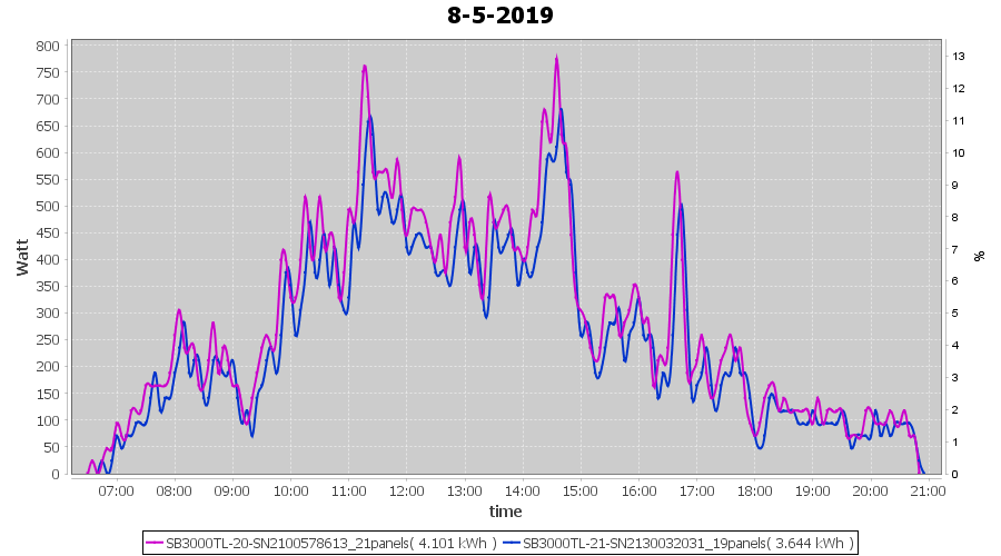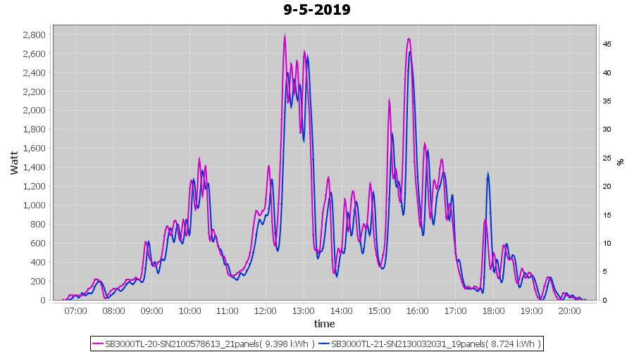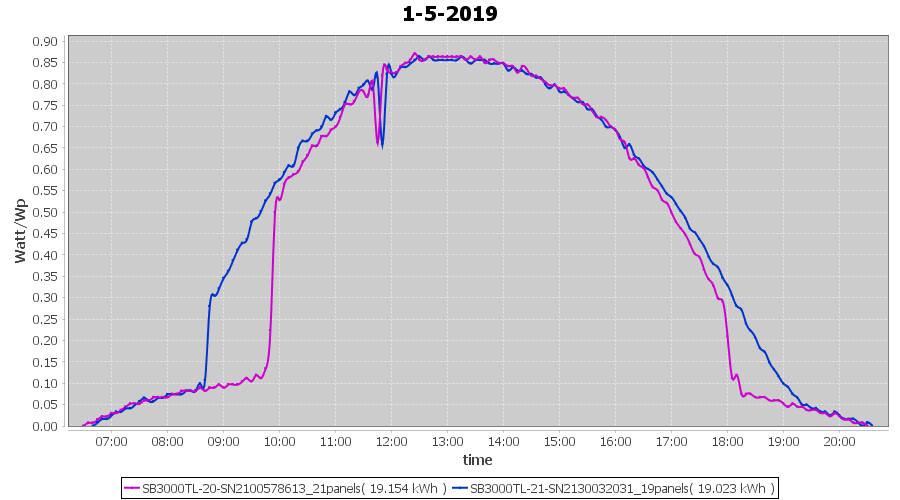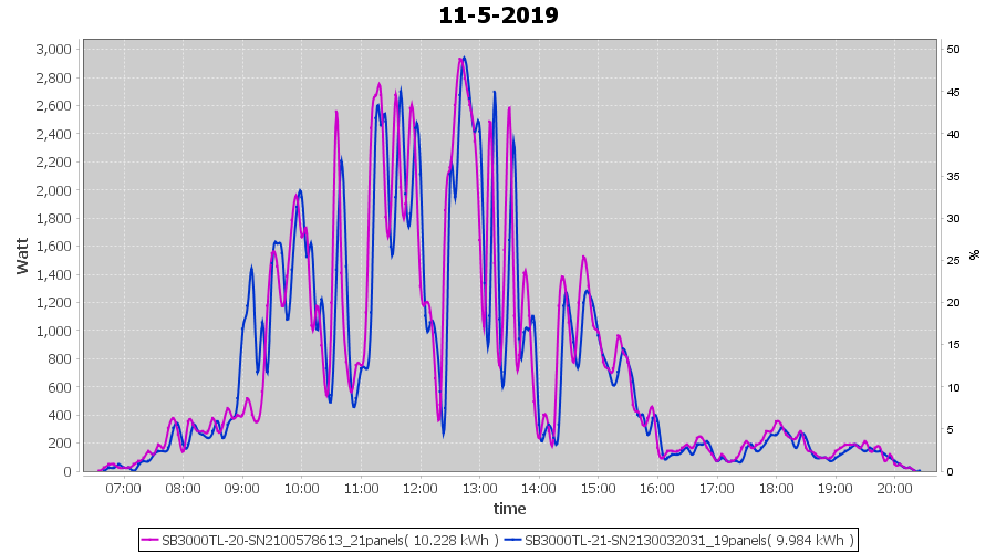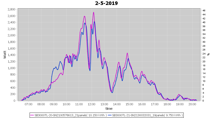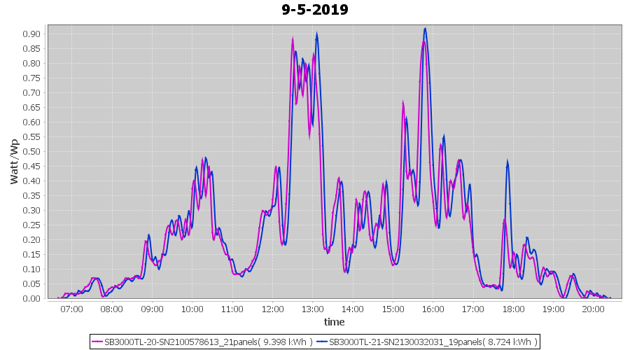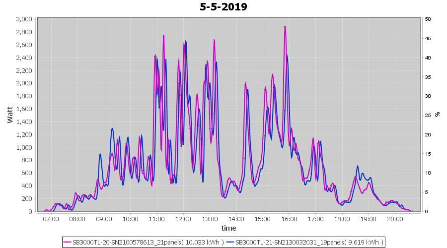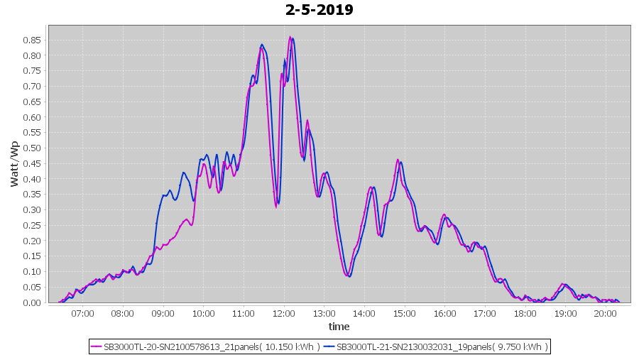 | 2-5-2019 | kWh | Sum | W/Wp | 19.900 | 6000 | 3.3 | 9.204 | € 7.14 | 2.6 |