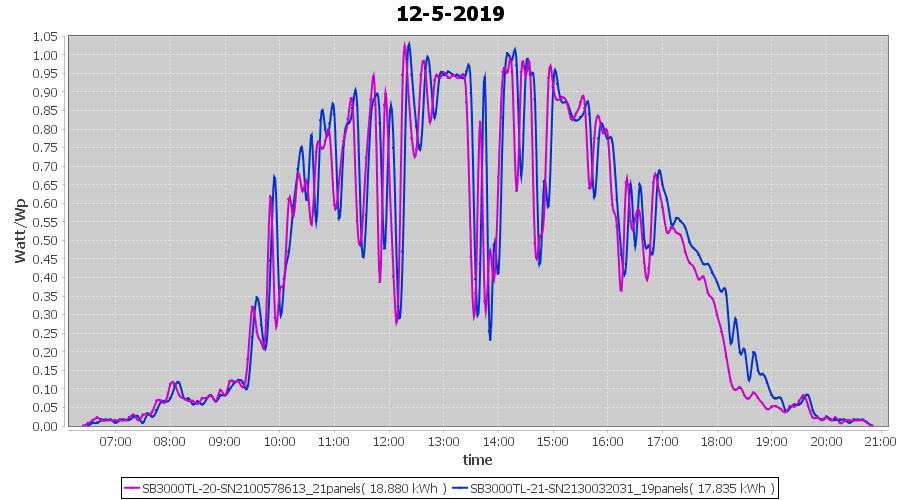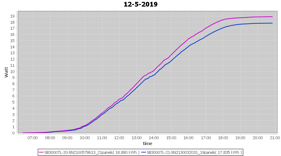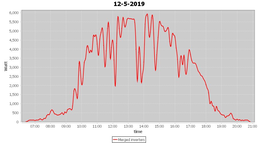 | 12-5-2019 | kWh | Sum | W/Wp | 36.715 | 6000 | 6.1 | 16.981 | € 13.17 | 4.7 |