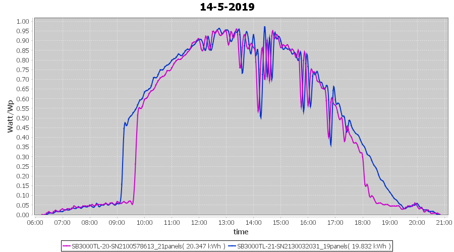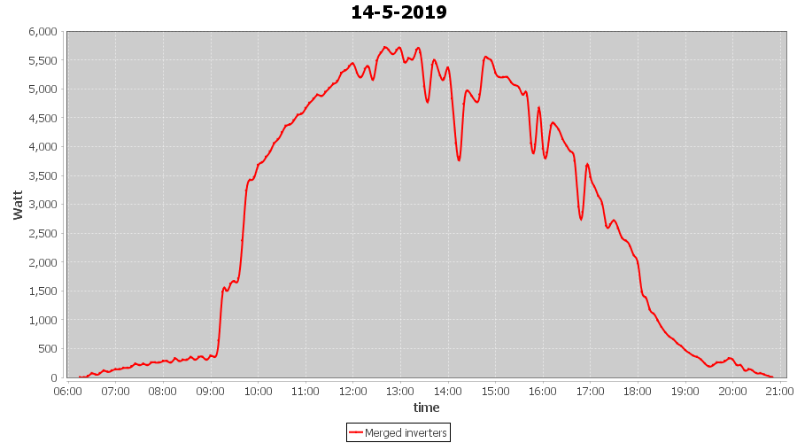 | 14-5-2019 | kWh | Sum | W/Wp | 40.179 | 6000 | 6.7 | 18.583 | € 14.42 | 5.1 |