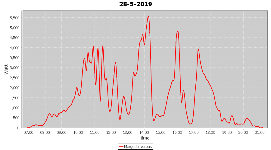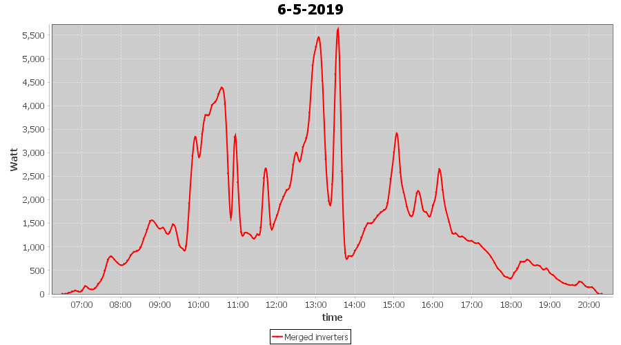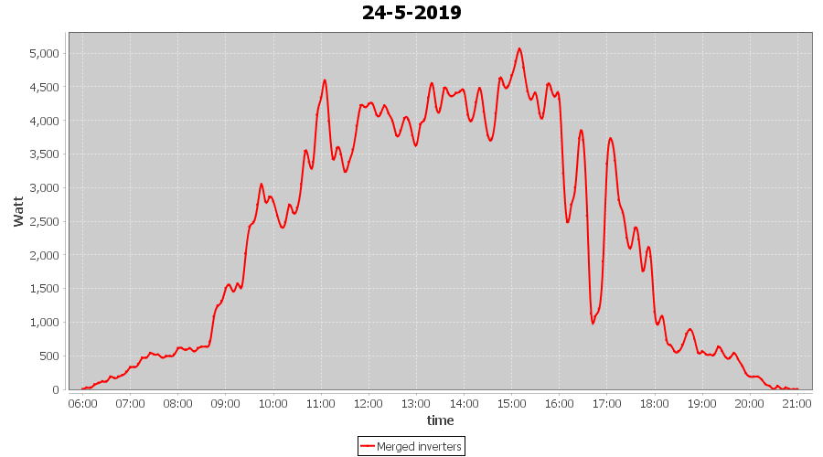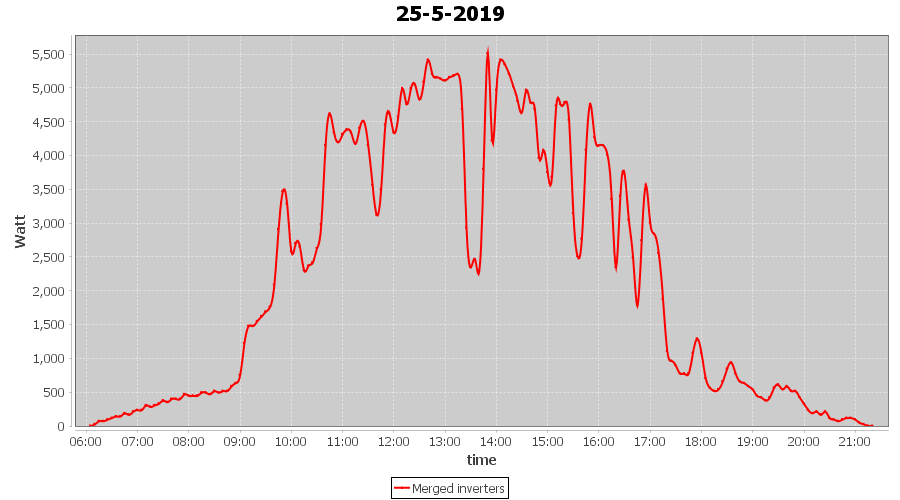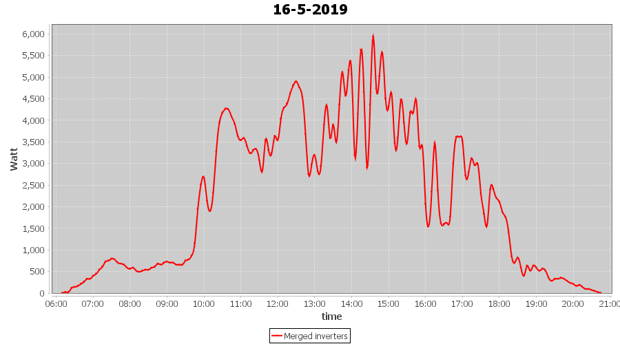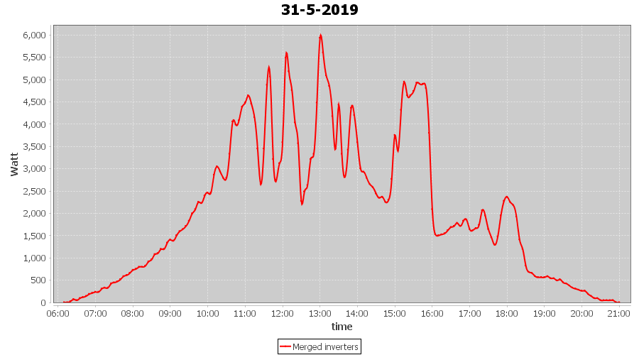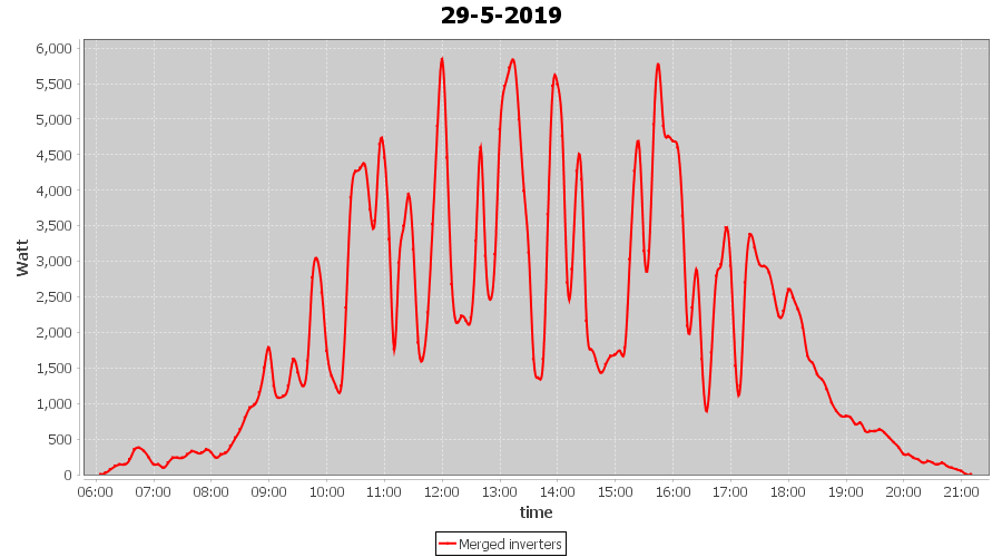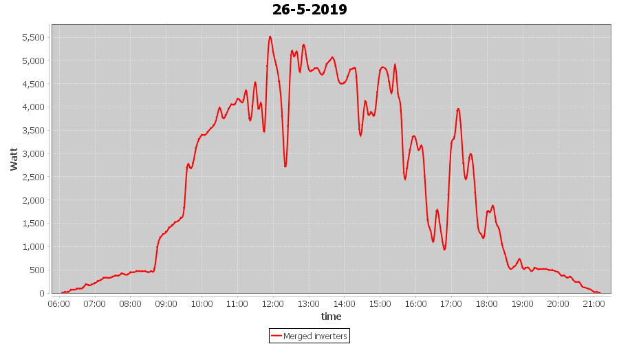 | 26-5-2019 | kWh | Sum | W/Wp | 35.216 | 6000 | 5.9 | 16.287 | € 12.64 | 4.5 |