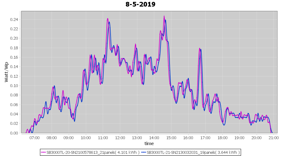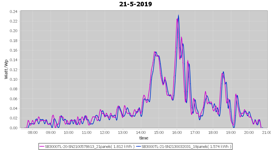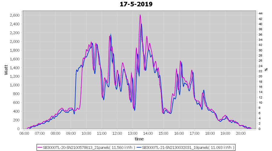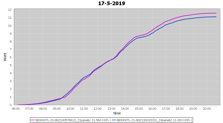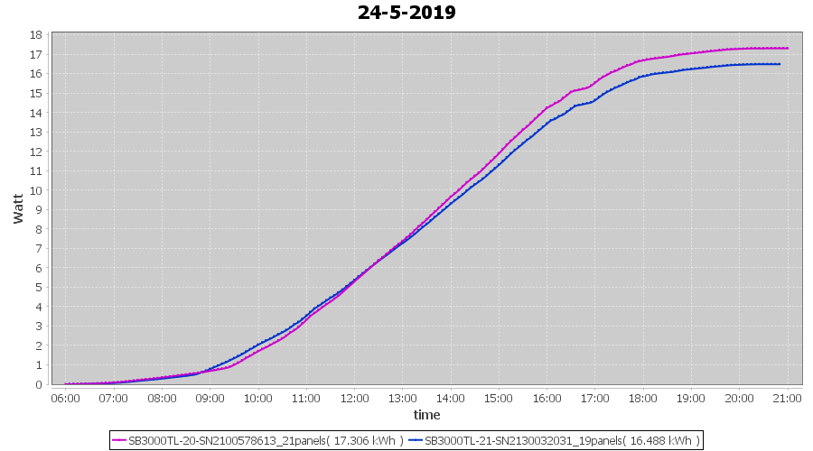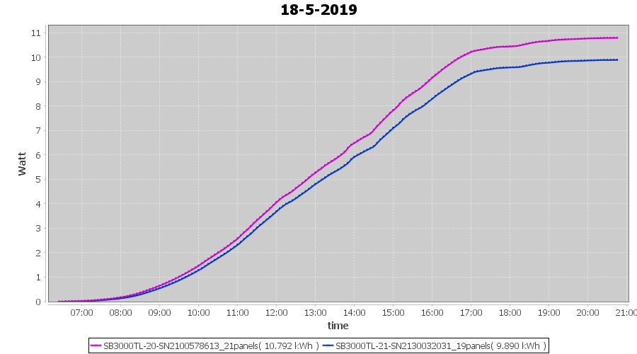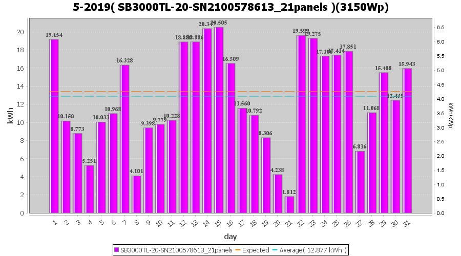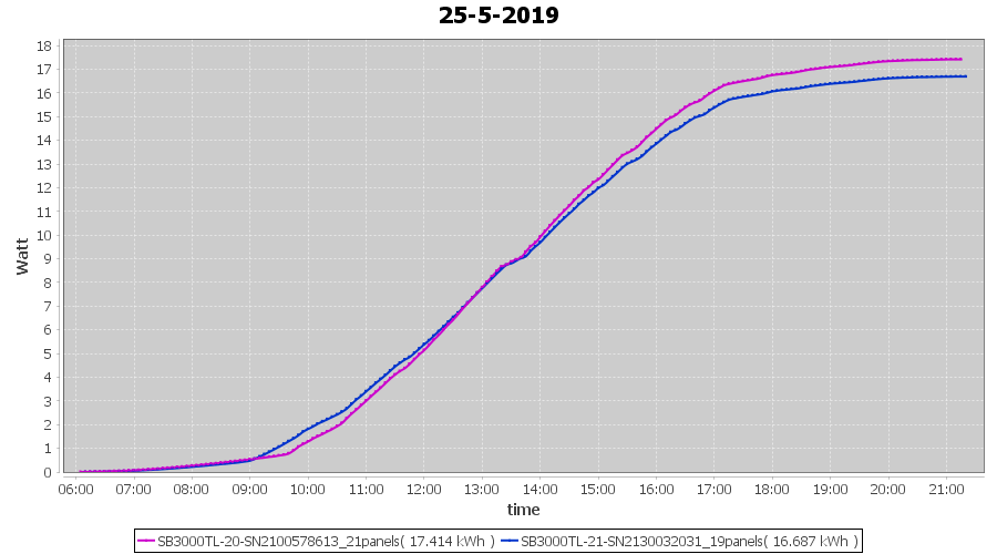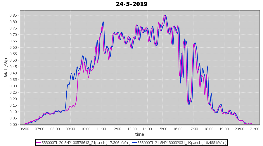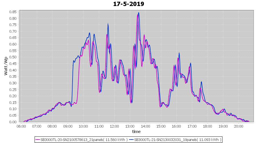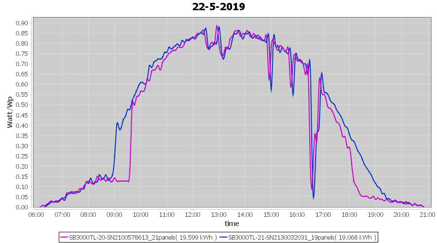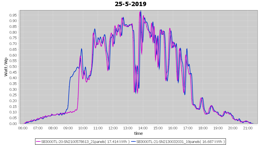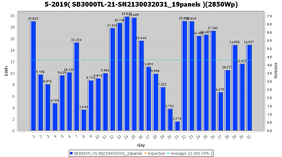 | 17-5-2019 | kWh | Sum | W/Wp | 22.653 | 6000 | 3.8 | 10.477 | € 8.13 | 2.9 |