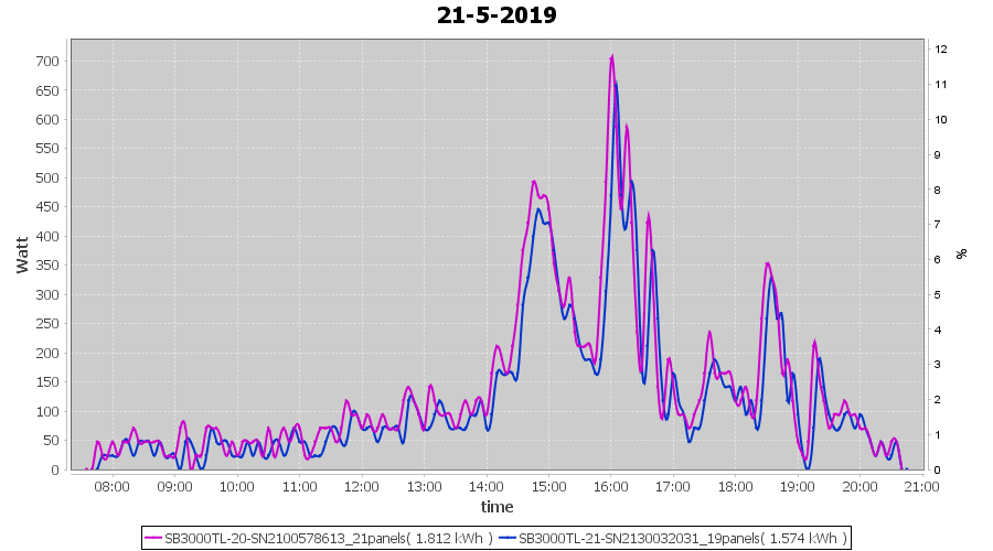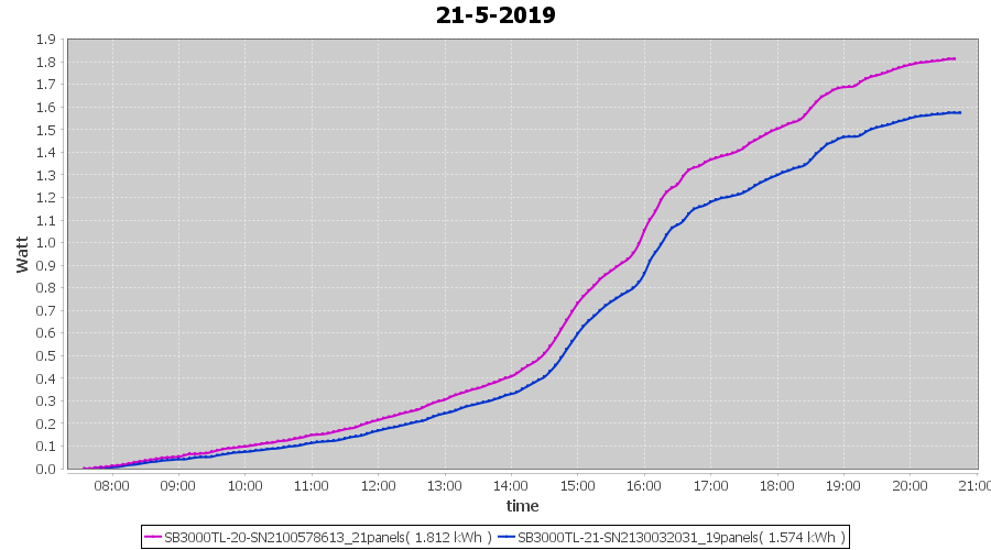 | 21-5-2019 | kWh | Sum | W/Wp | 3.386 | 6000 | 0.6 | 1.566 | € 1.22 | 0.4 |