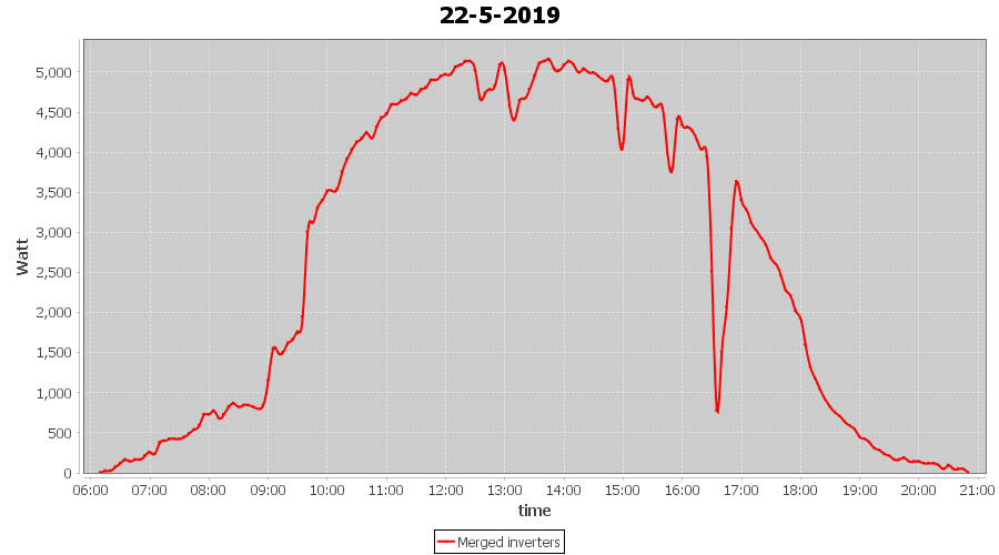 | 22-5-2019 | kWh | Sum | W/Wp | 38.667 | 6000 | 6.4 | 17.883 | € 13.87 | 5.0 |