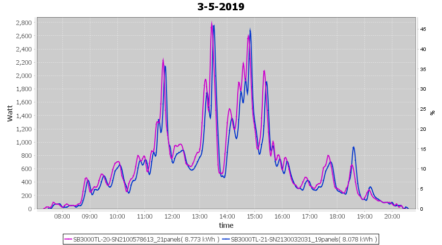 | 3-5-2019 | kWh | Sum | W/Wp | 16.851 | 6000 | 2.8 | 7.794 | € 6.05 | 2.2 |