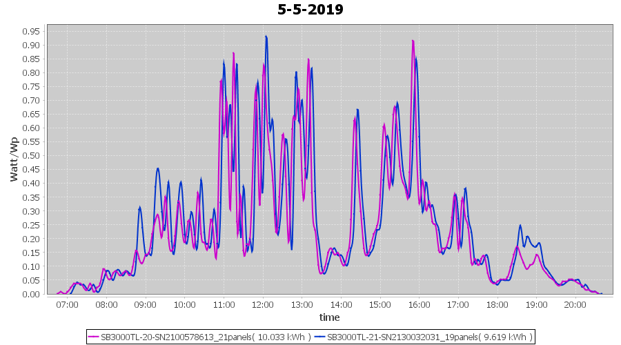 | 5-5-2019 | kWh | Sum | W/Wp | 19.652 | 6000 | 3.3 | 9.089 | € 7.05 | 2.5 |