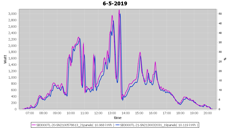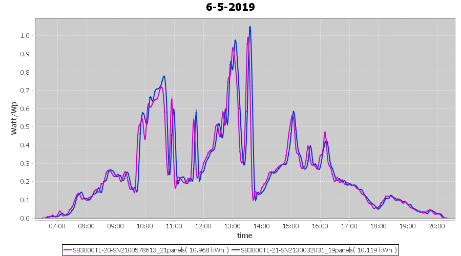 | 6-5-2019 | kWh | Sum | W/Wp | 21.087 | 6000 | 3.5 | 9.753 | € 7.57 | 2.7 |