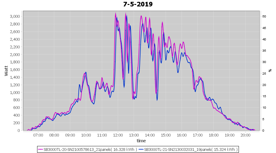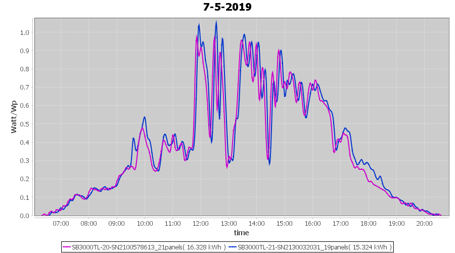 | 7-5-2019 | kWh | Sum | W/Wp | 31.652 | 6000 | 5.3 | 14.639 | € 11.36 | 4.1 |