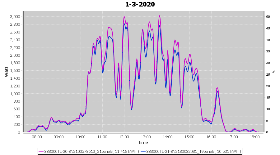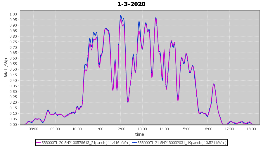 | 1-3-2020 | kWh | Sum | W/Wp | 21.937 | 6000 | 3.7 | 10.146 | € 7.90 | 3.2 |