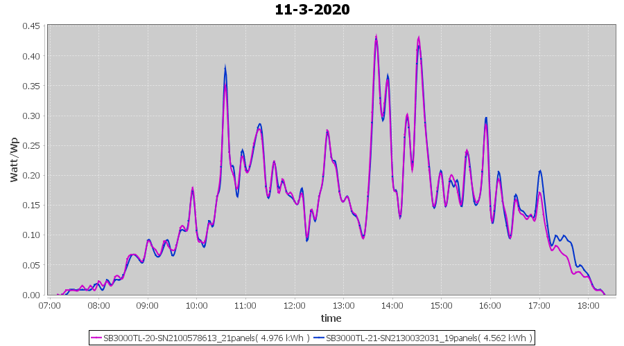 | 11-3-2020 | kWh | Sum | W/Wp | 9.538 | 6000 | 1.6 | 4.411 | € 3.43 | 1.4 |