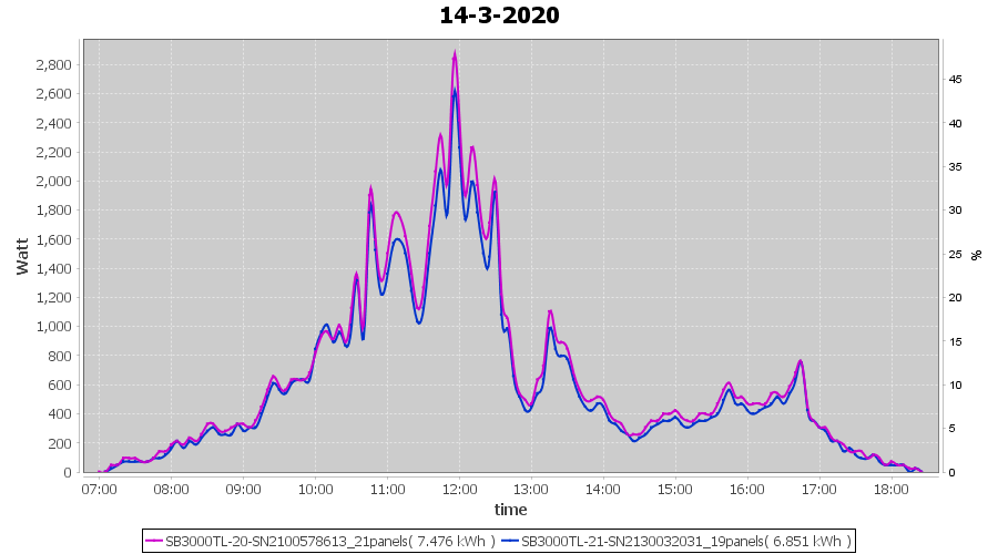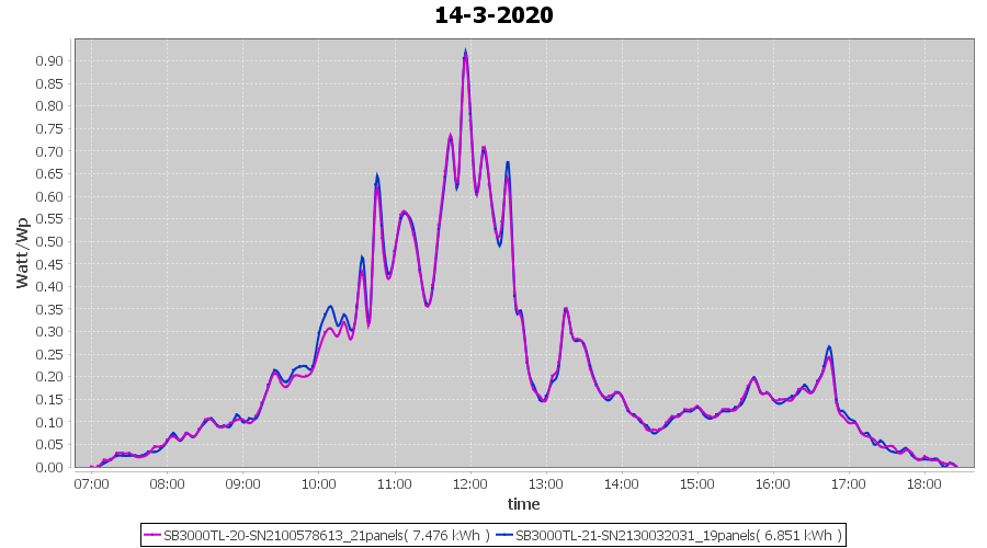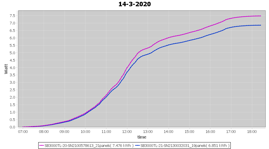 | 14-3-2020 | kWh | Sum | W/Wp | 14.327 | 6000 | 2.4 | 6.626 | € 5.16 | 2.1 |