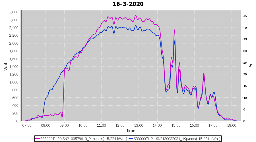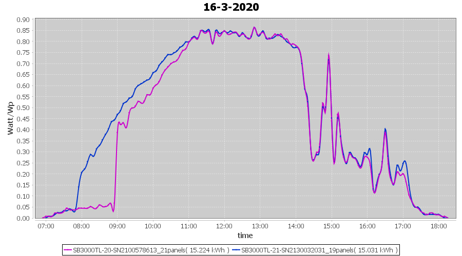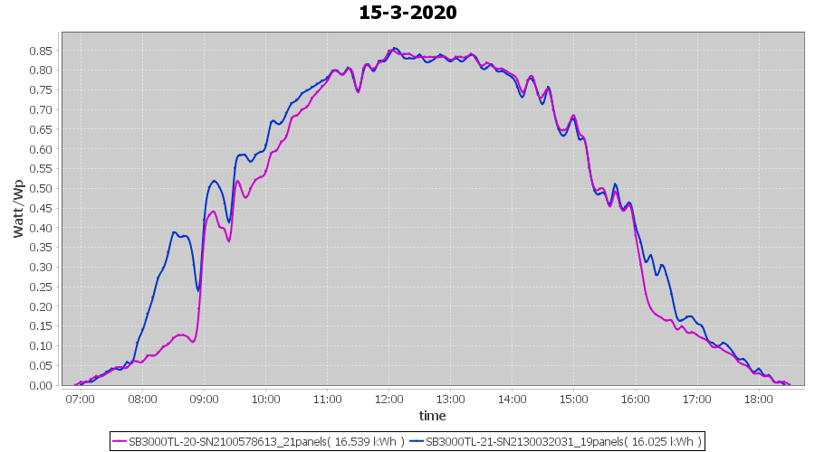 | 16-3-2020 | kWh | Sum | W/Wp | 30.255 | 6000 | 5.0 | 13.993 | € 10.89 | 4.5 |