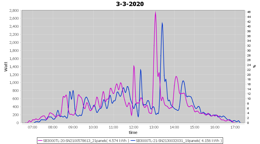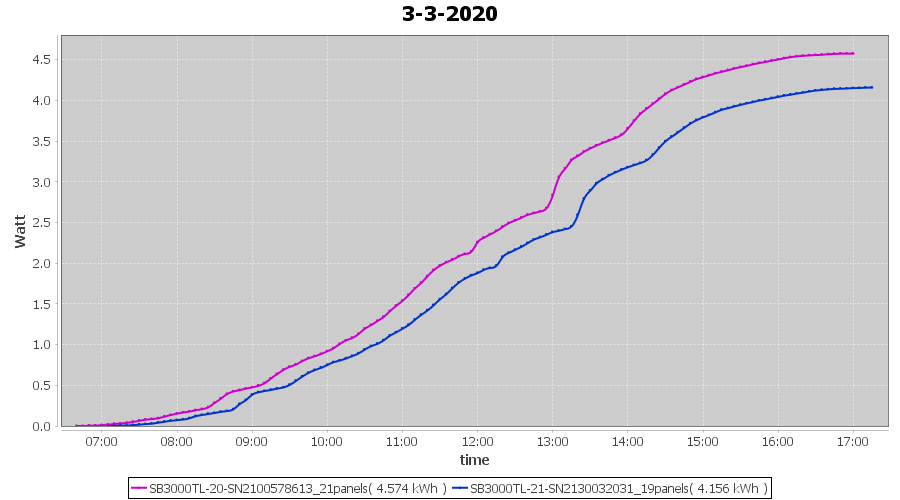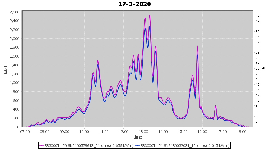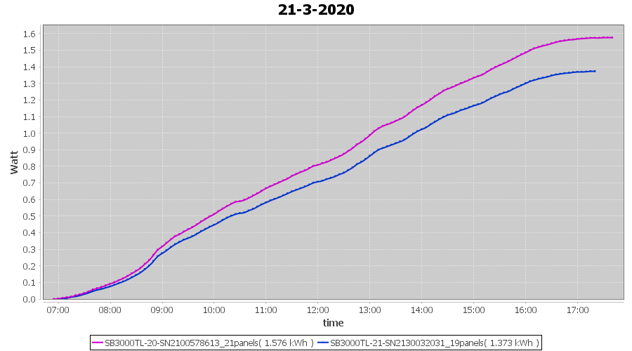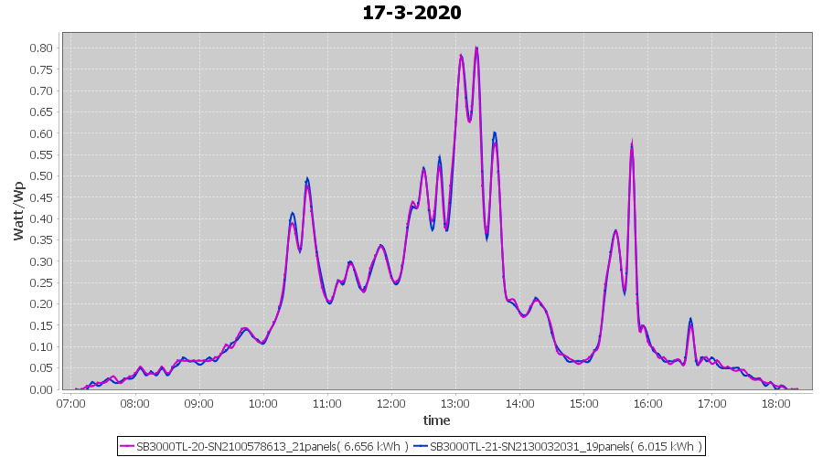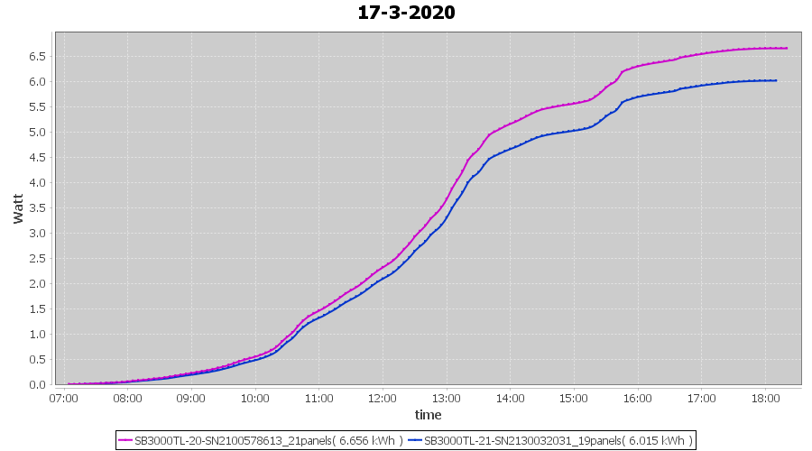 | 17-3-2020 | kWh | Sum | W/Wp | 12.671 | 6000 | 2.1 | 5.860 | € 4.56 | 1.9 |