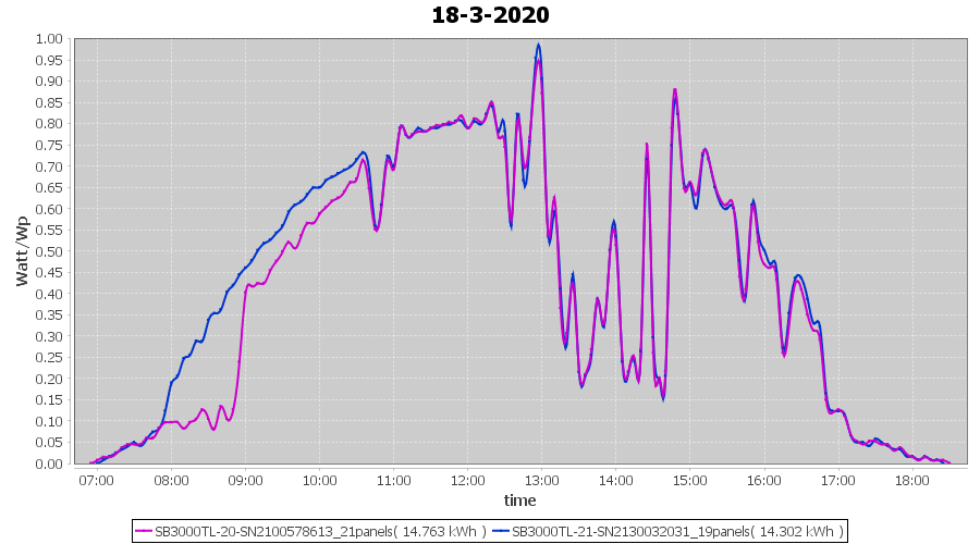 | 18-3-2020 | kWh | Sum | W/Wp | 29.065 | 6000 | 4.8 | 13.443 | € 10.46 | 4.3 |