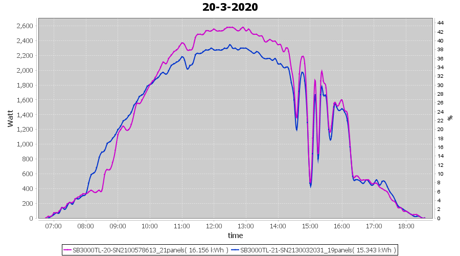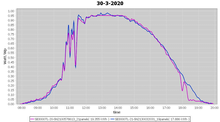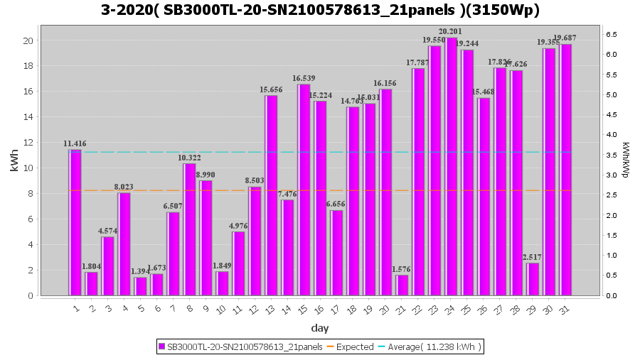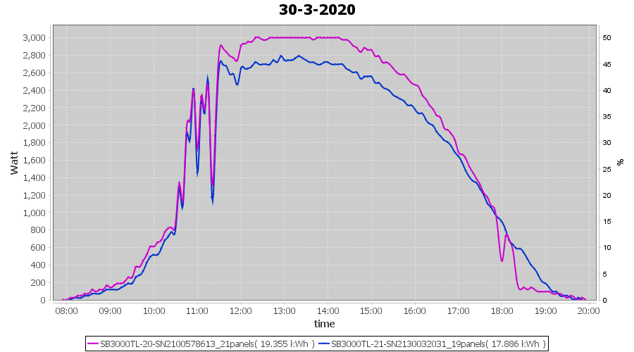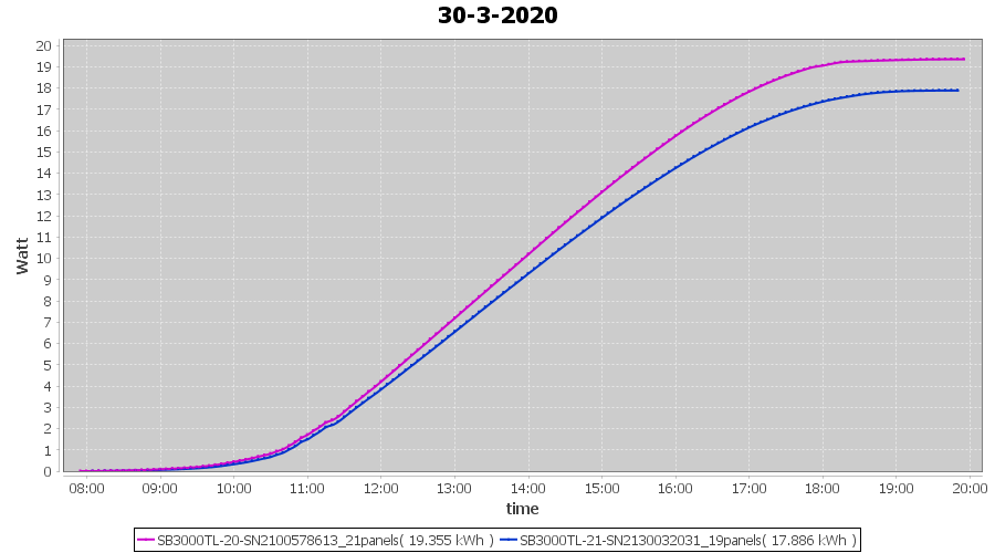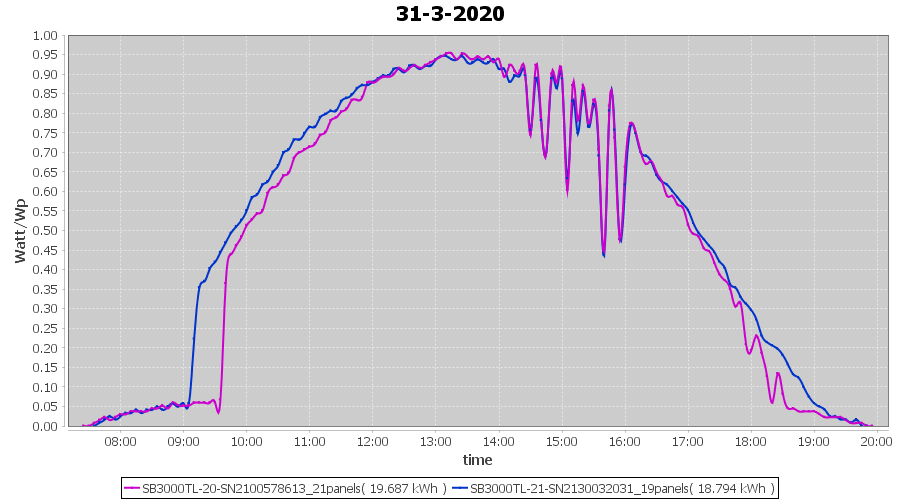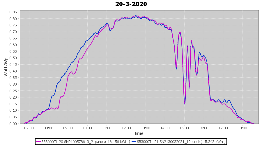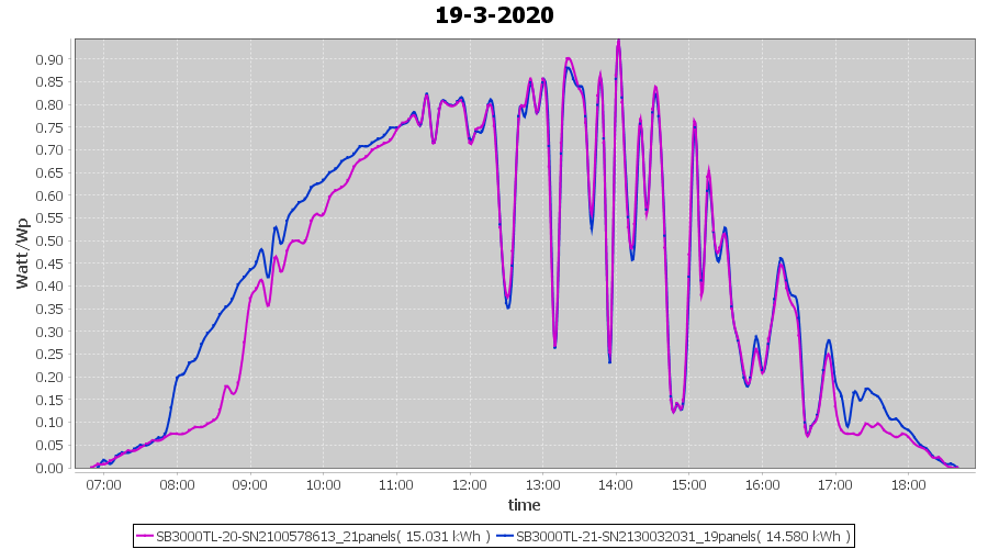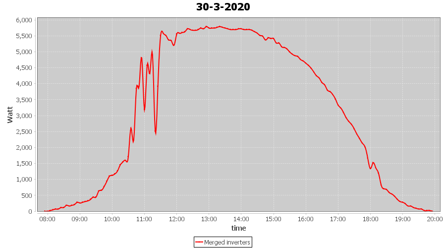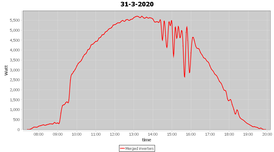 | 20-3-2020 | kWh | Sum | W/Wp | 31.499 | 6000 | 5.2 | 14.568 | € 11.34 | 4.6 |
