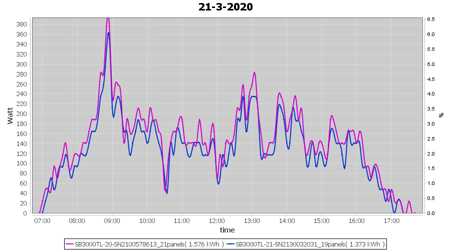 | 21-3-2020 | kWh | Sum | W/Wp | 2.949 | 6000 | 0.5 | 1.364 | € 1.06 | 0.4 |