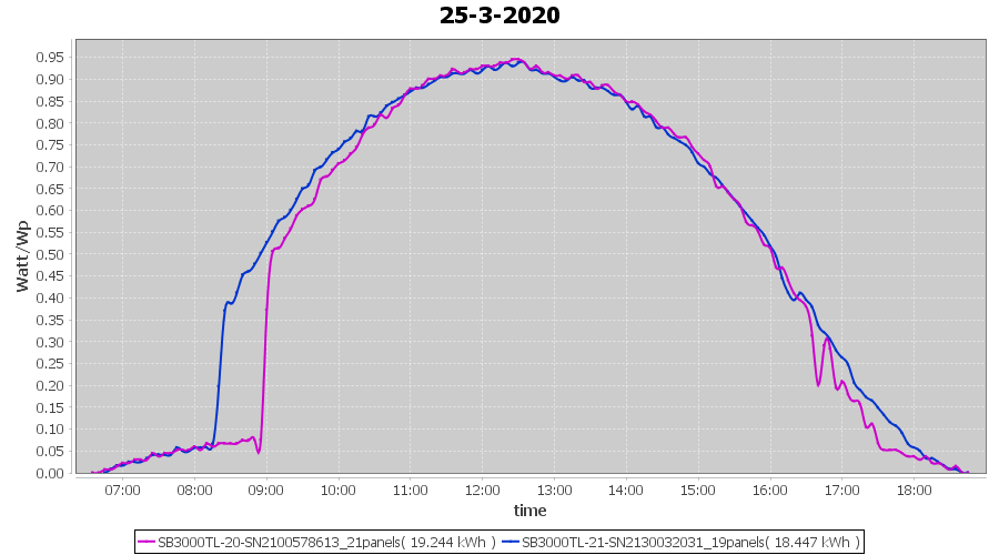 | 25-3-2020 | kWh | Sum | W/Wp | 37.691 | 6000 | 6.3 | 17.432 | € 13.57 | 5.6 |