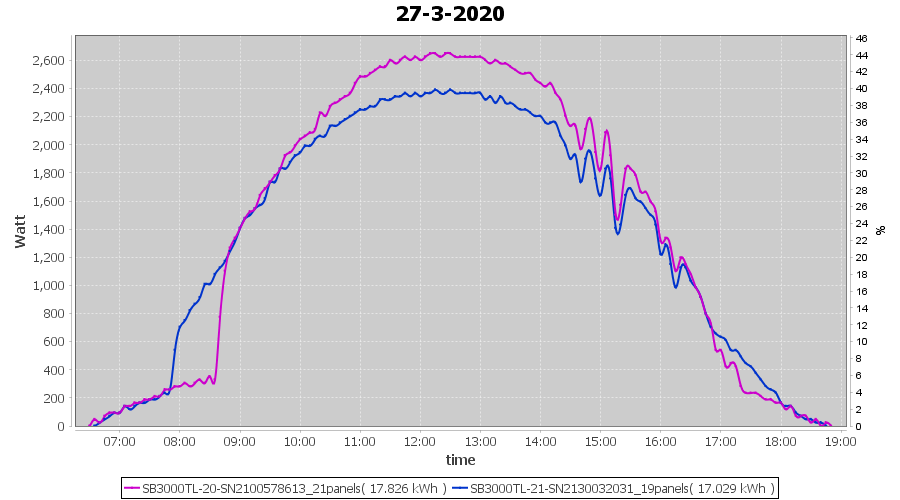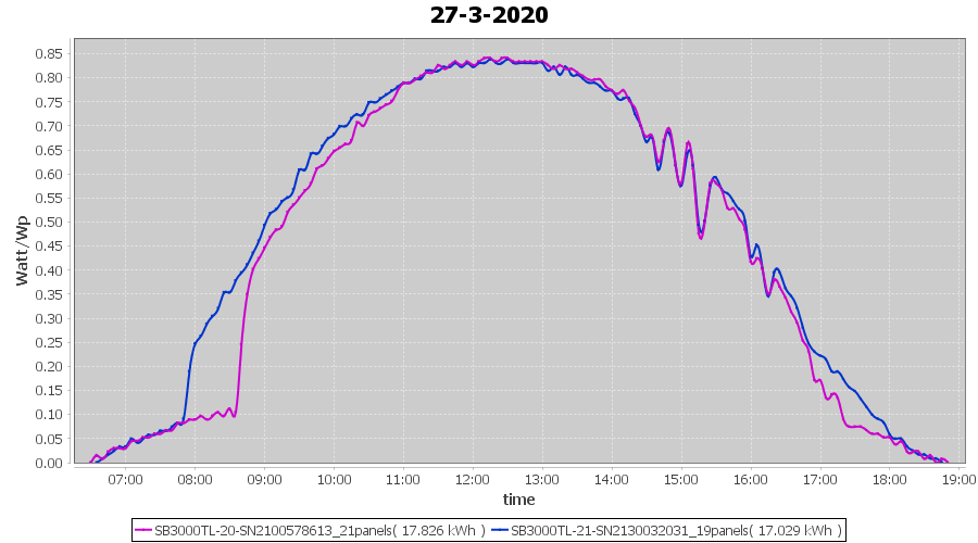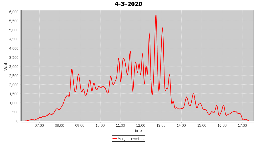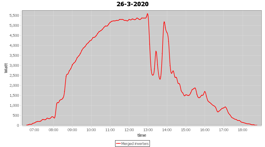 | 27-3-2020 | kWh | Sum | W/Wp | 34.855 | 6000 | 5.8 | 16.120 | € 12.54 | 5.1 |