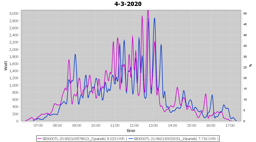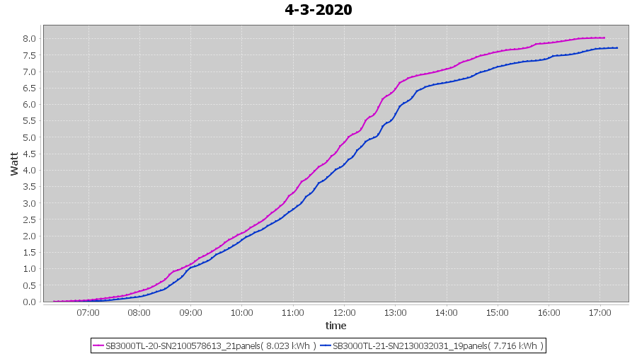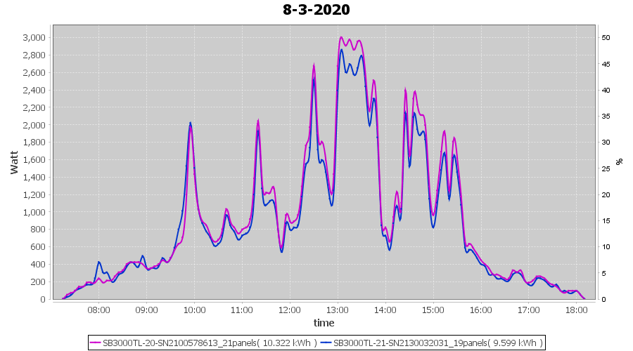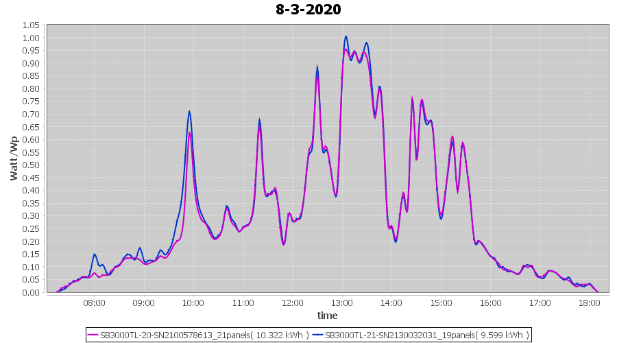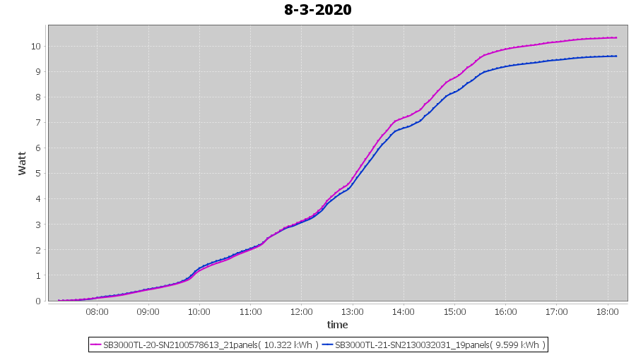 | 8-3-2020 | kWh | Sum | W/Wp | 19.921 | 6000 | 3.3 | 9.213 | € 7.17 | 2.9 |