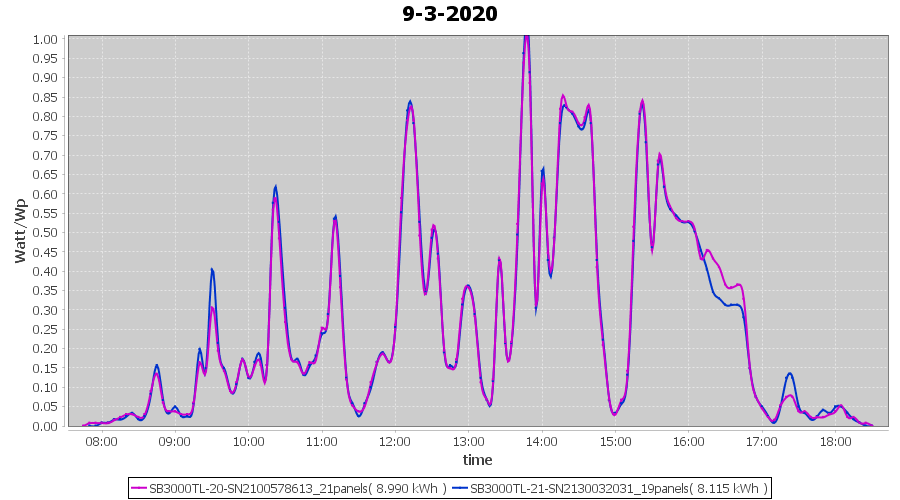 | 9-3-2020 | kWh | Sum | W/Wp | 17.105 | 6000 | 2.9 | 7.911 | € 6.16 | 2.5 |