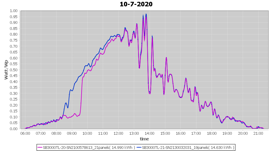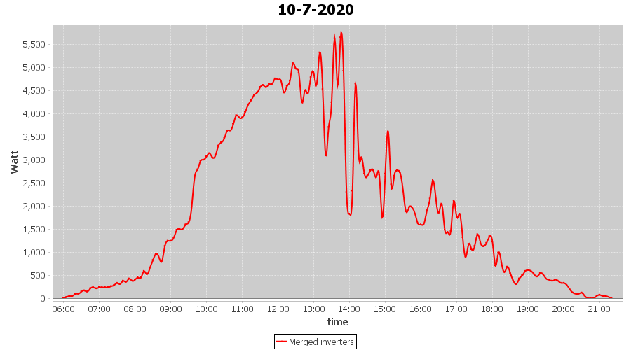 | 10-7-2020 | kWh | Sum | W/Wp | 29.620 | 6000 | 4.9 | 13.699 | € 10.66 | 3.2 |