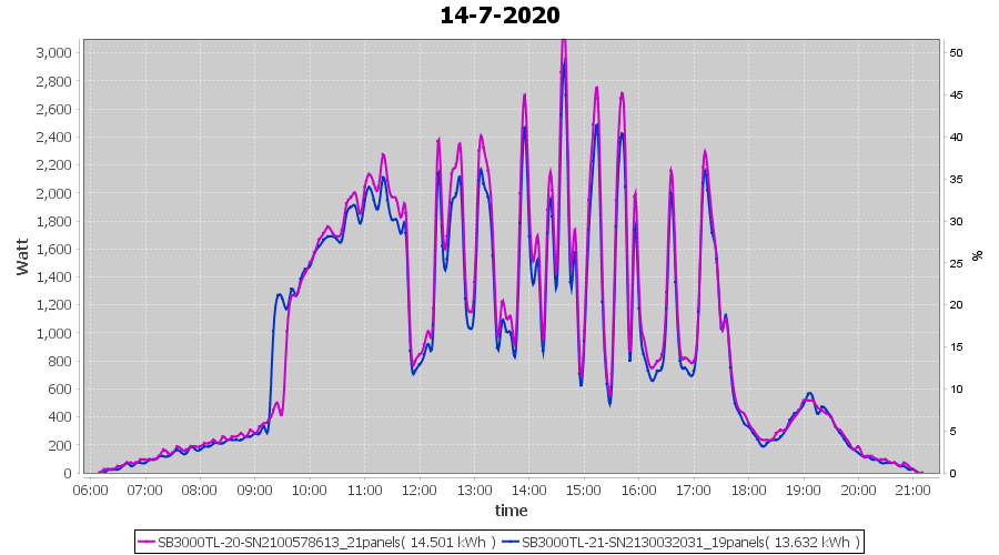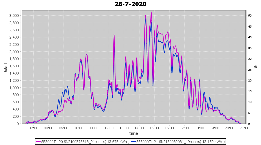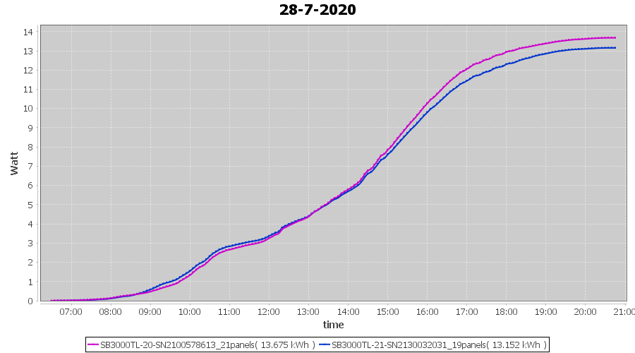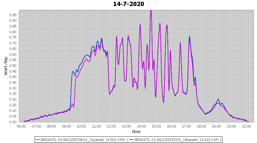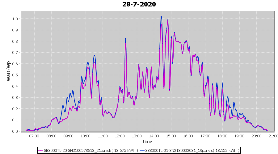 | 14-7-2020 | kWh | Sum | W/Wp | 28.133 | 6000 | 4.7 | 13.012 | € 10.13 | 3.1 |