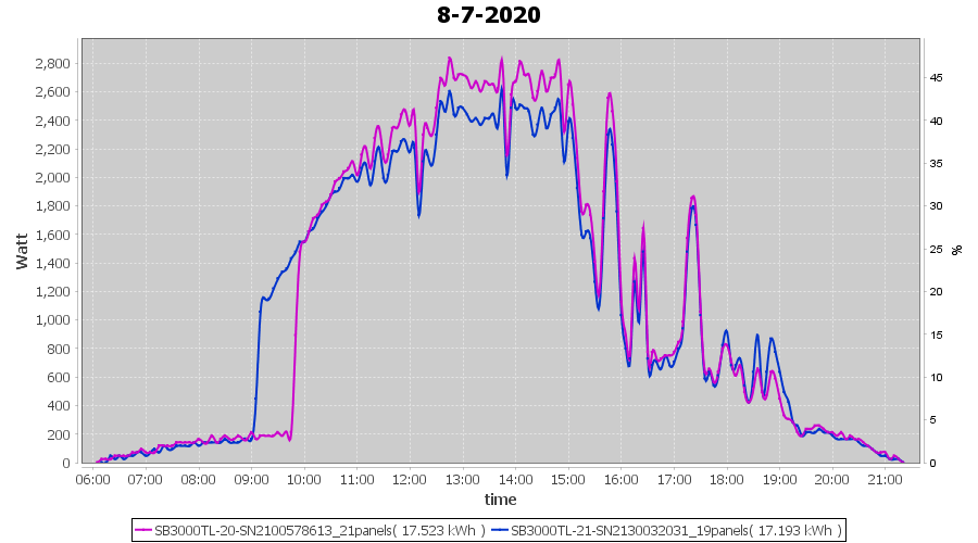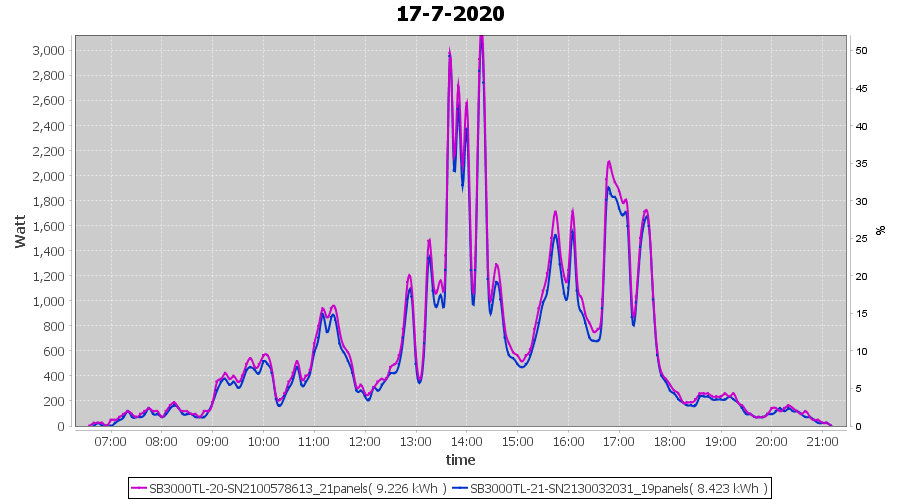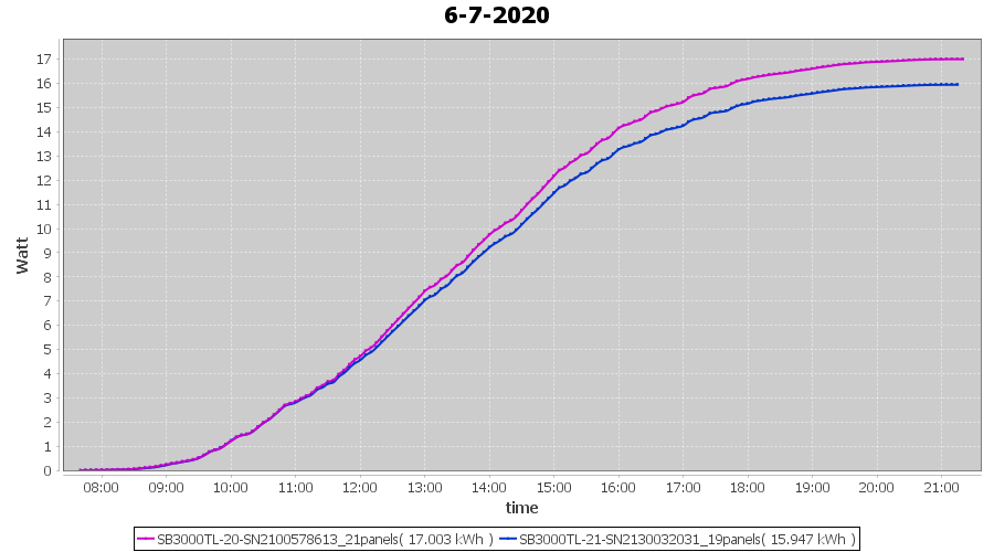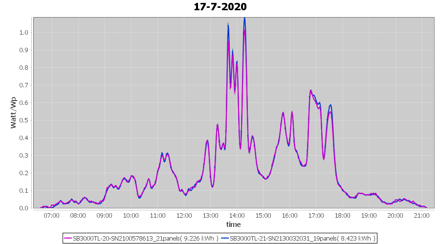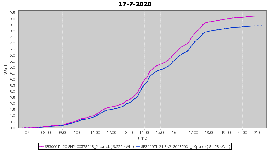 | 17-7-2020 | kWh | Sum | W/Wp | 17.649 | 6000 | 2.9 | 8.163 | € 6.35 | 1.9 |
