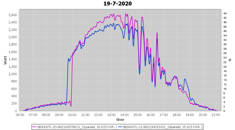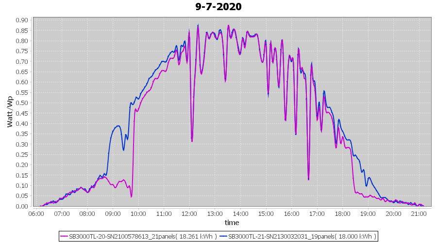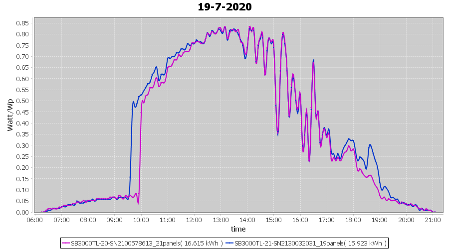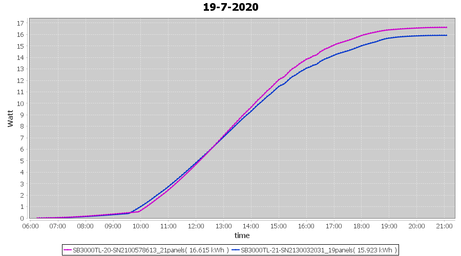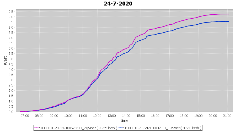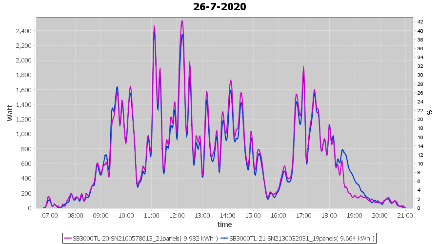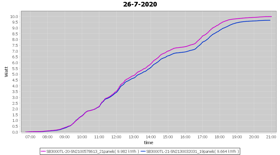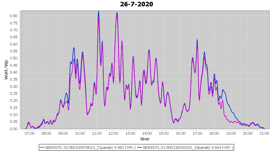 | 26-7-2020 | kWh | Sum | W/Wp | 19.646 | 6000 | 3.3 | 9.086 | € 7.07 | 2.1 |