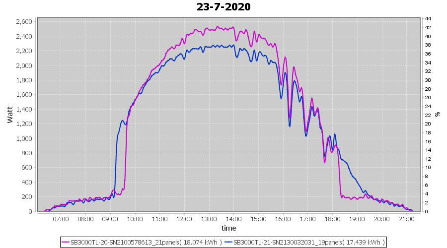 | 23-7-2020 | kWh | Sum | W/Wp | 35.513 | 6000 | 5.9 | 16.425 | € 12.78 | 3.9 |