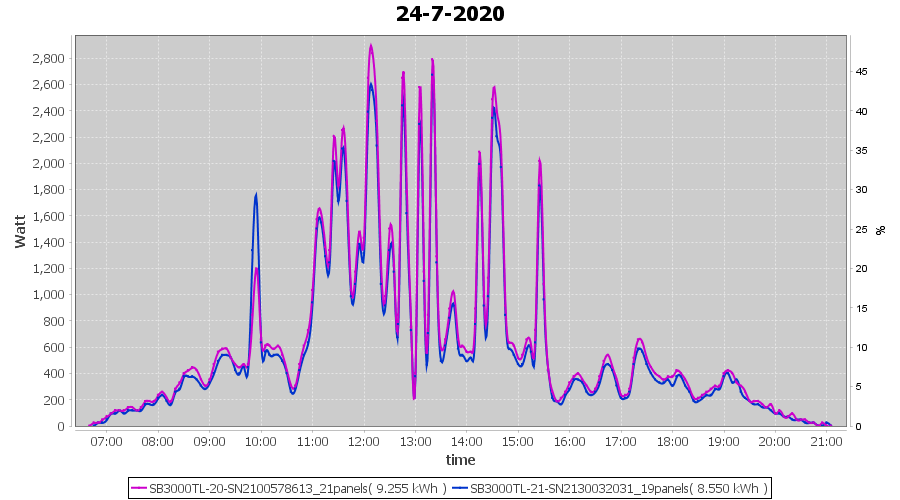 | 24-7-2020 | kWh | Sum | W/Wp | 17.805 | 6000 | 3.0 | 8.235 | € 6.41 | 1.9 |