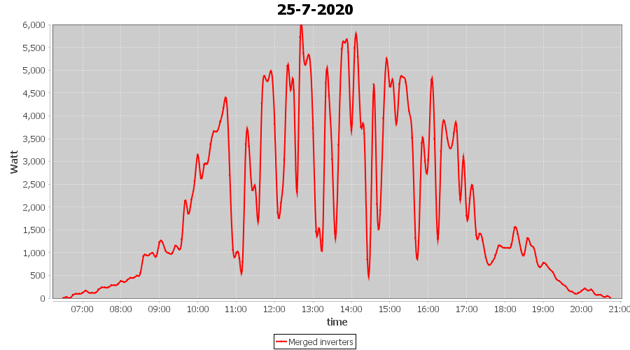 | 25-7-2020 | kWh | Sum | W/Wp | 29.298 | 6000 | 4.9 | 13.550 | € 10.54 | 3.2 |