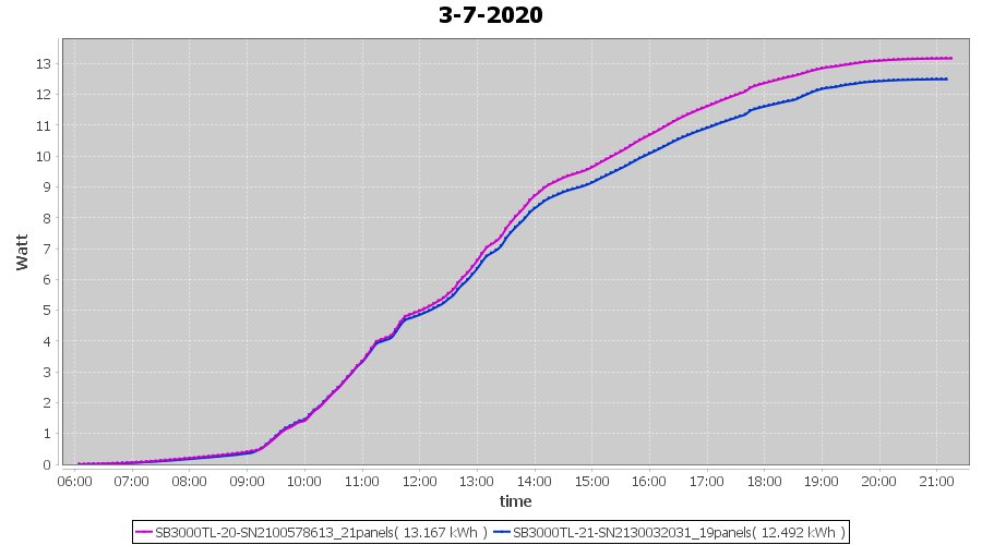| SB3000TL-20-SN2100578613_21panels | 3150 | 393.750 | 125.0 | 467.071 | 148.3 | 118.6% | 467.071 | 148.3 | 118.6% |