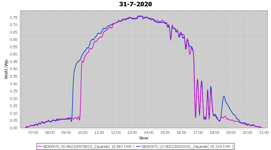 | 21-7-2020 | kWh | Sum | W/Wp | 31.657 | 6000 | 5.3 | 14.641 | € 11.39 | 3.5 |