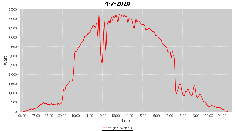 | 4-7-2020 | kWh | Sum | W/Wp | 37.266 | 6000 | 6.2 | 17.236 | € 13.41 | 4.1 |