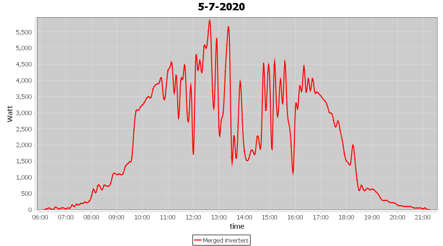 | 5-7-2020 | kWh | Sum | W/Wp | 31.300 | 6000 | 5.2 | 14.476 | € 11.27 | 3.4 |
