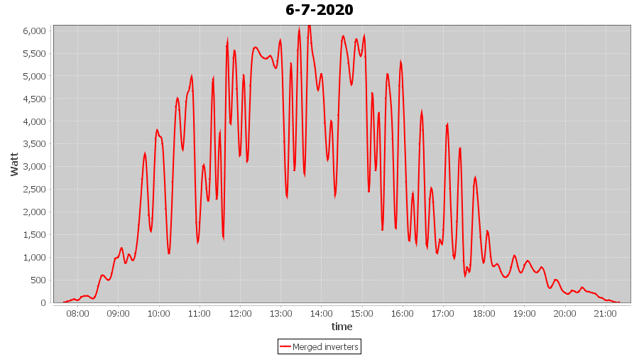 | 6-7-2020 | kWh | Sum | W/Wp | 32.950 | 6000 | 5.5 | 15.239 | € 11.86 | 3.6 |