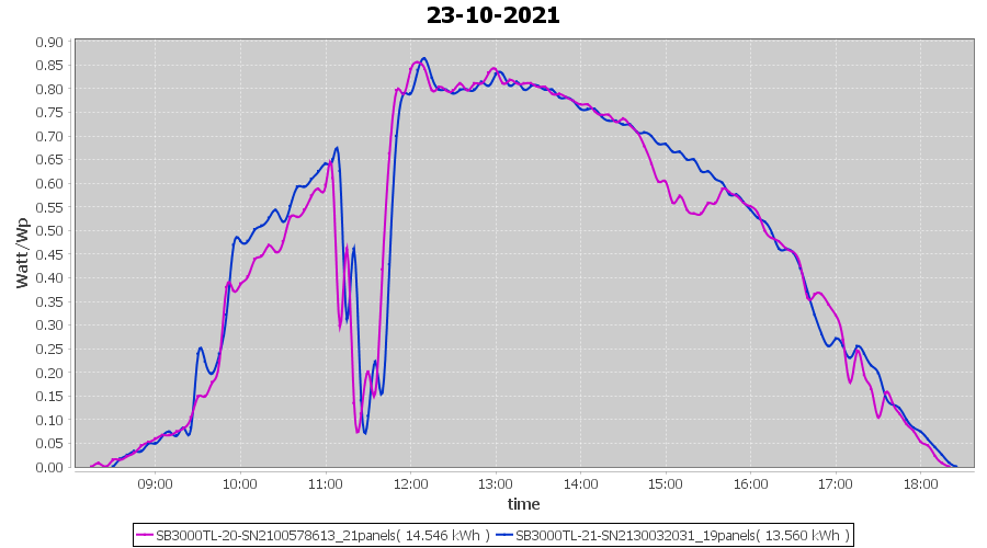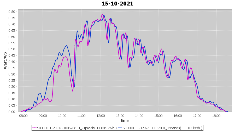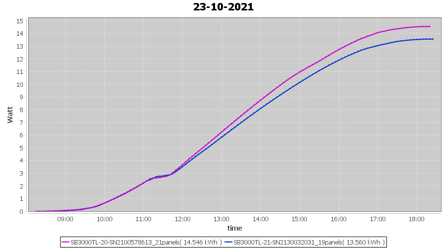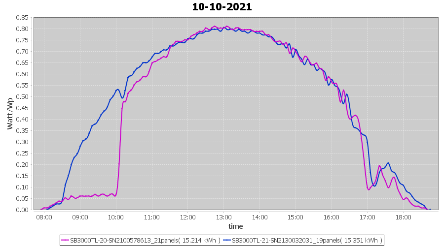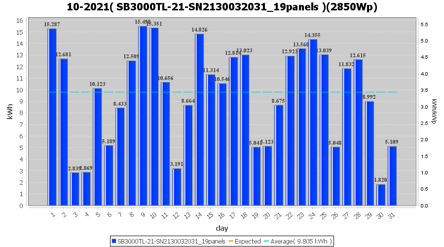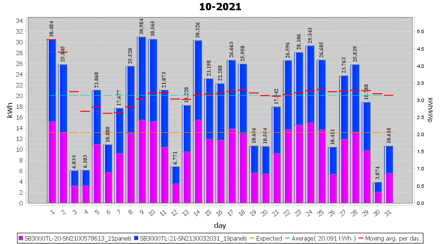 | 15-10-2021 | kWh | Sum | W/Wp | 23.198 | 6000 | 3.9 | 10.729 | € 8.34 | 3.7 |