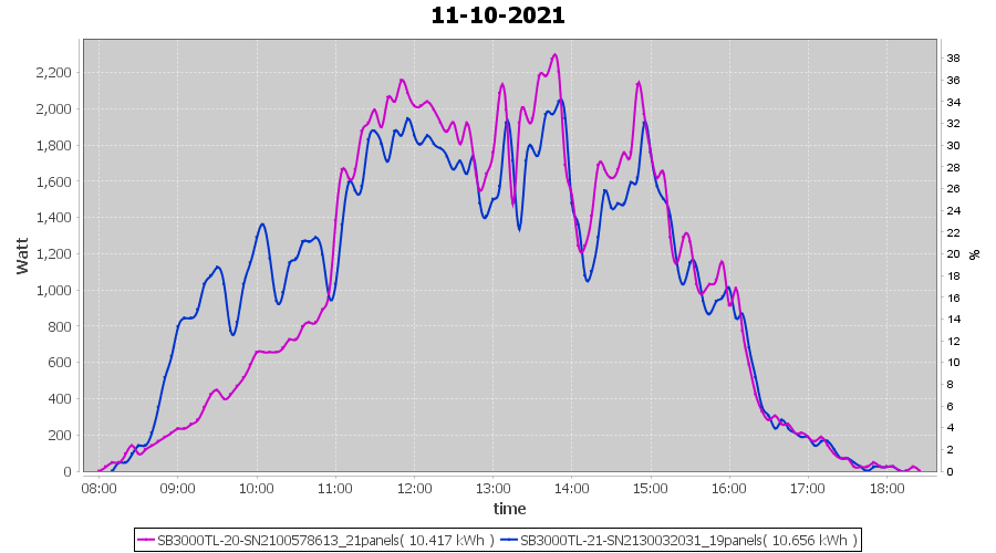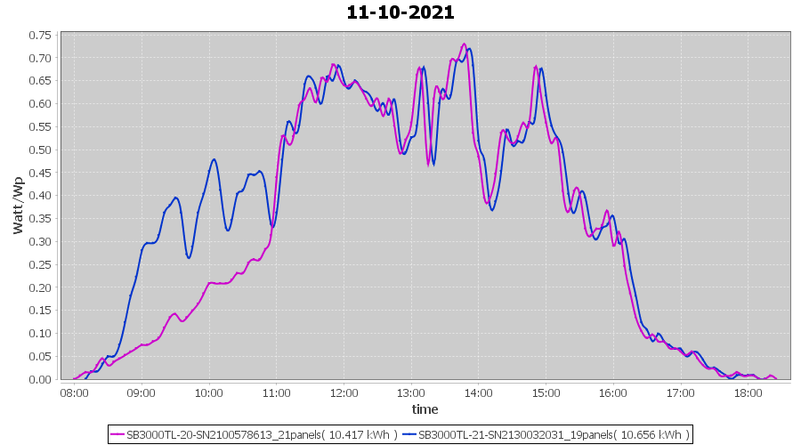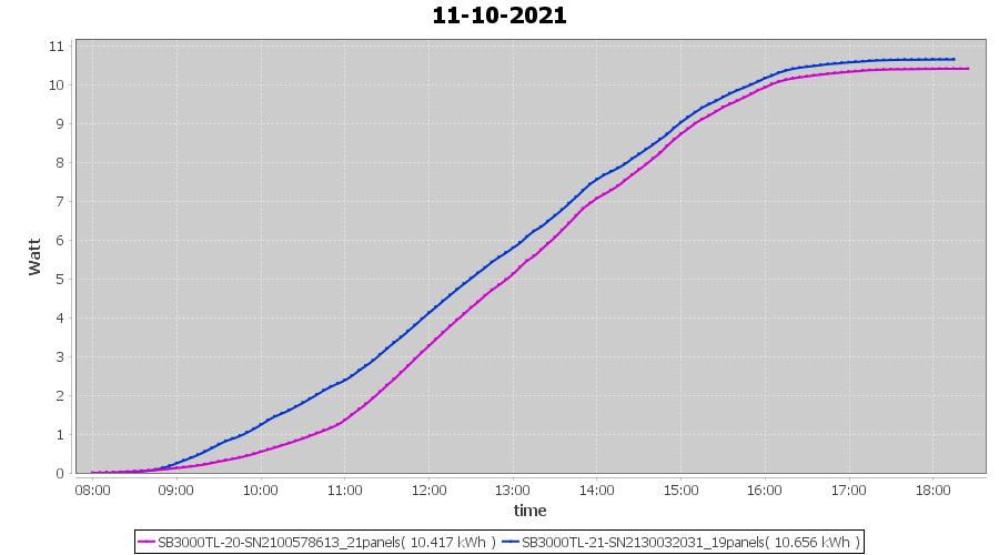| 11-10-2021 | kWh | Sum | W/Wp | 21.073 | 6000 | 3.5 | 9.746 | € 7.58 | 3.4 |
