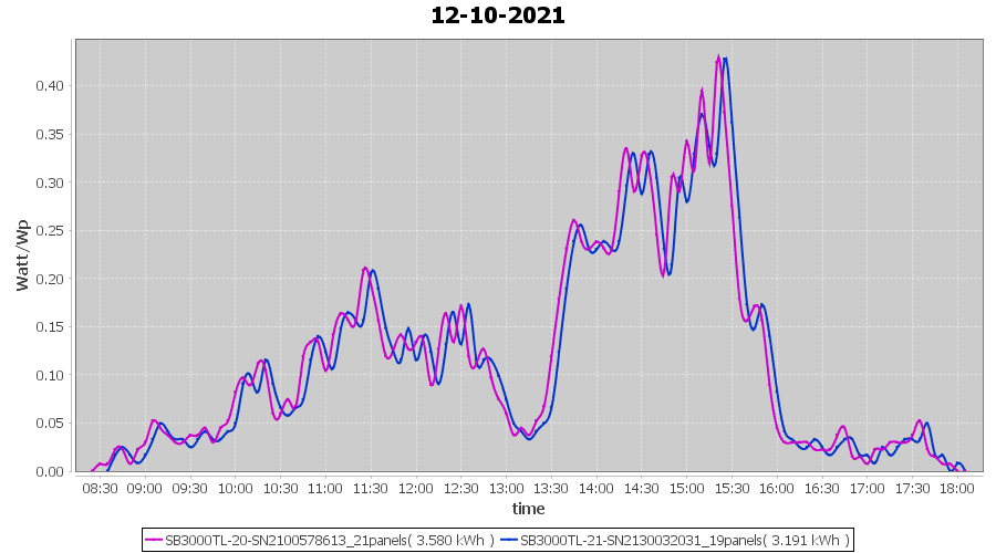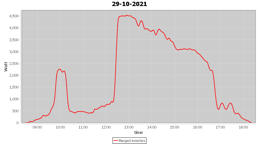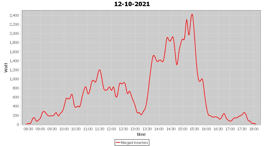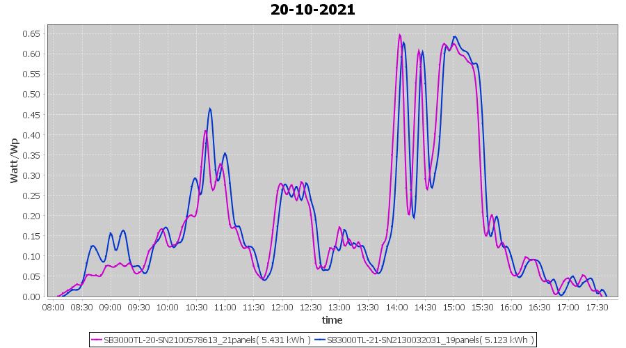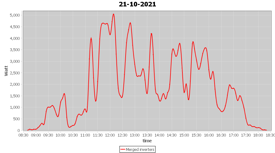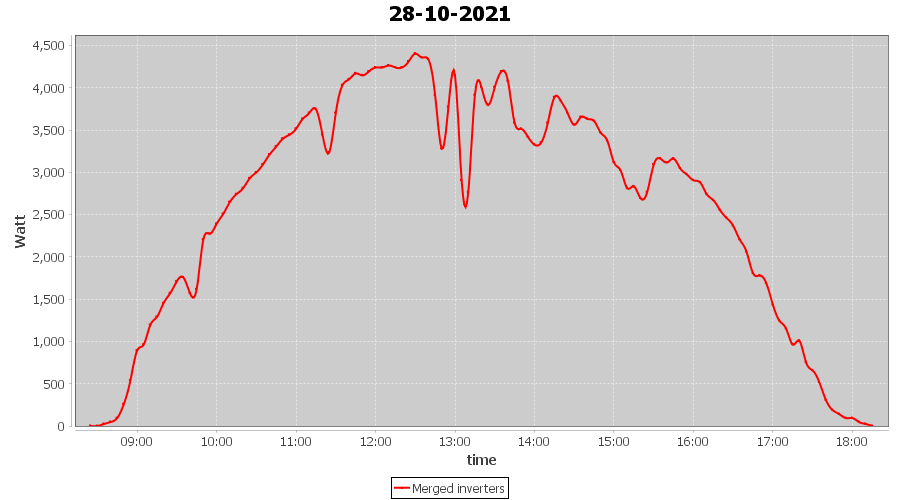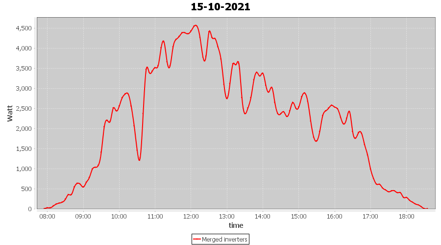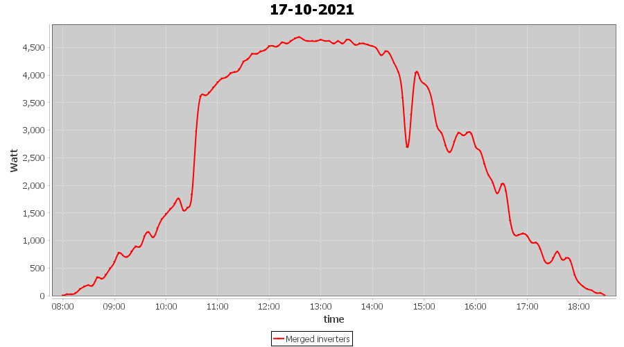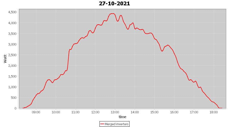 | 17-10-2021 | kWh | Sum | W/Wp | 26.663 | 6000 | 4.4 | 12.332 | € 9.59 | 4.3 |