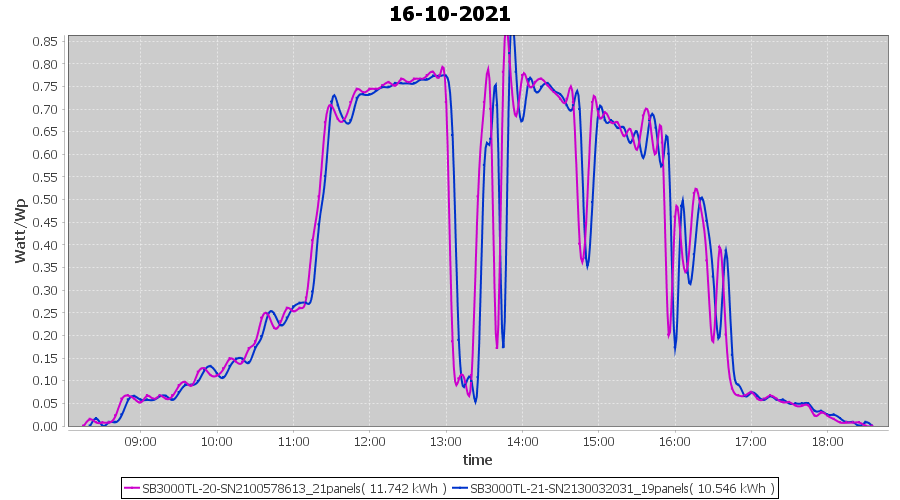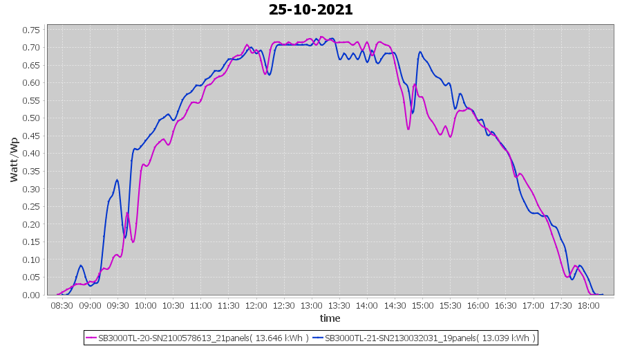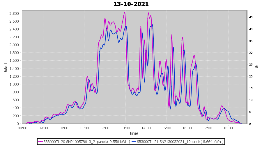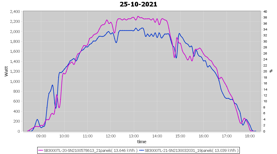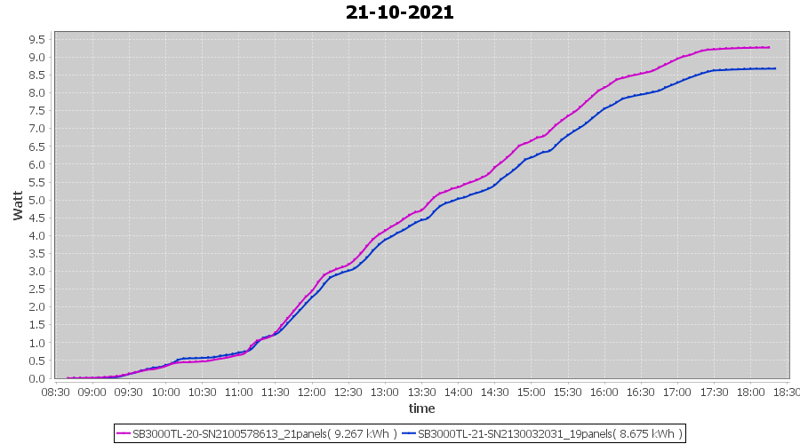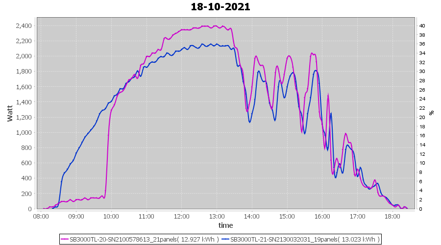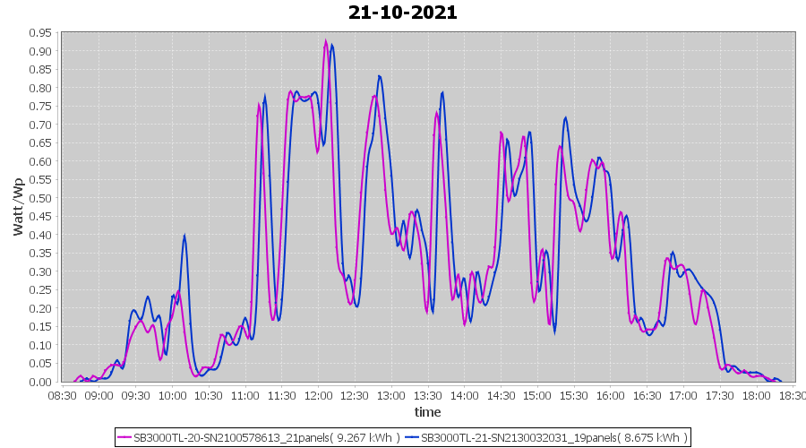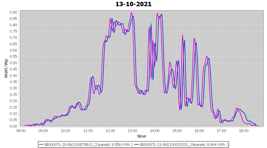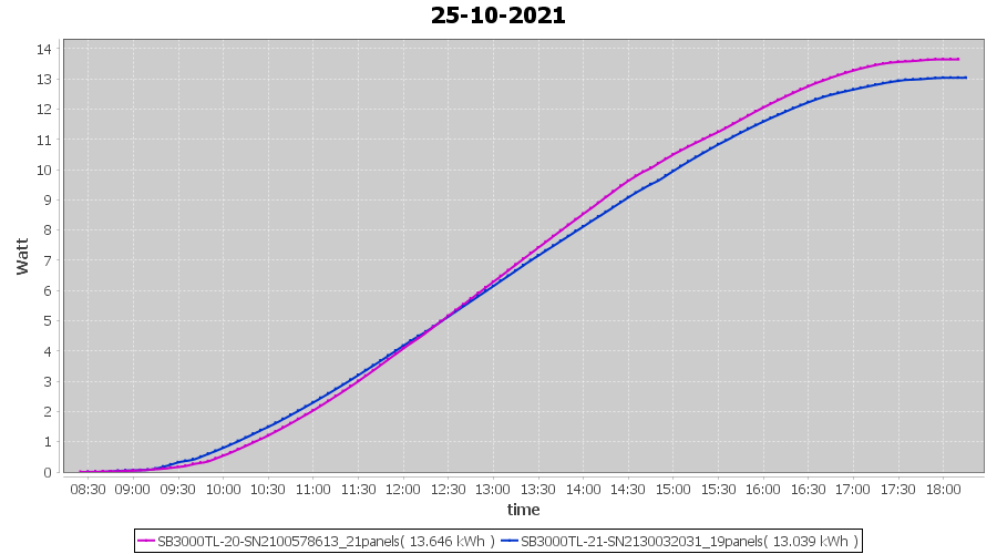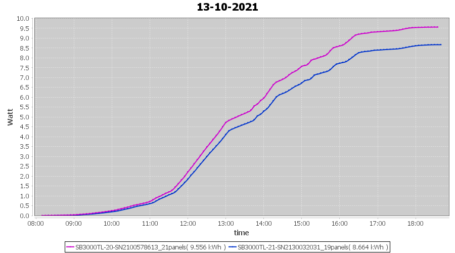 | 13-10-2021 | kWh | Sum | W/Wp | 18.220 | 6000 | 3.0 | 8.427 | € 6.55 | 2.9 |