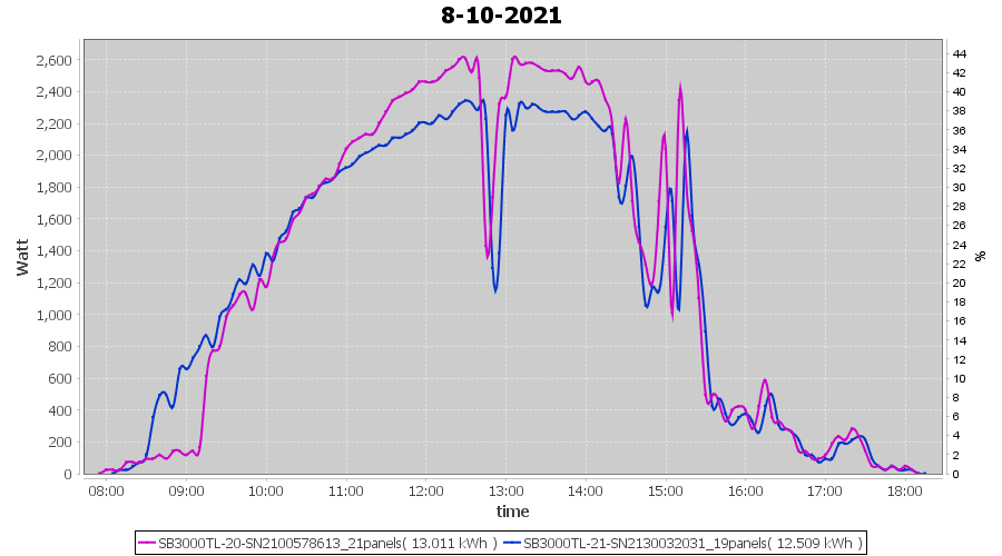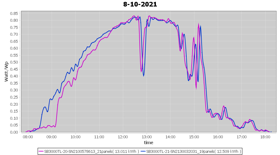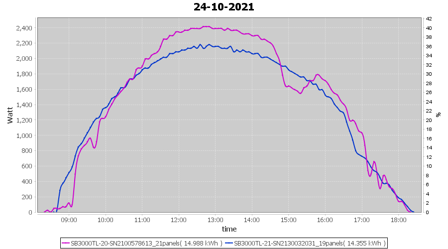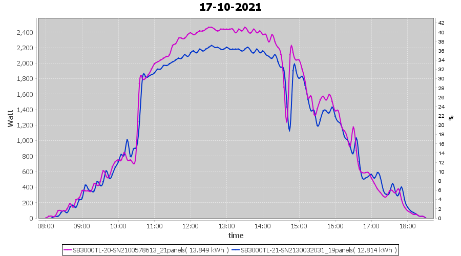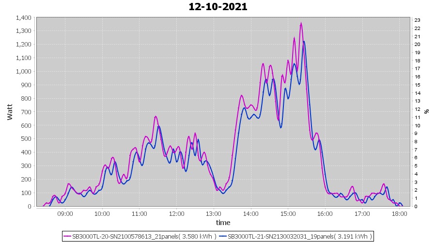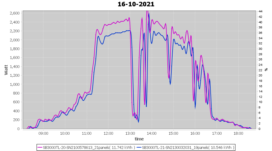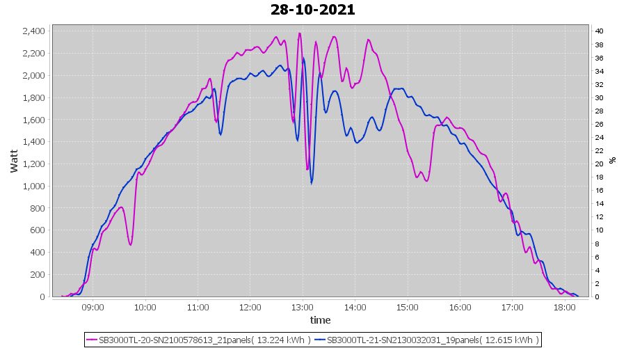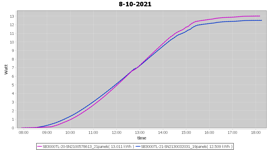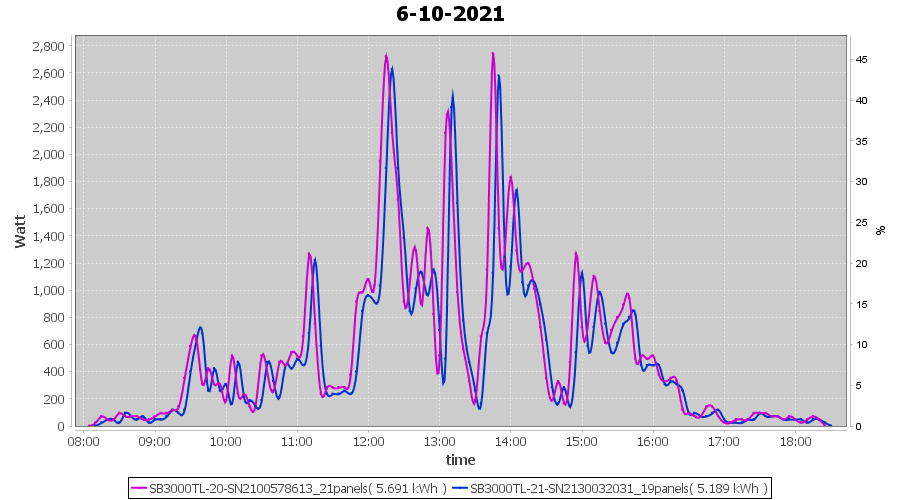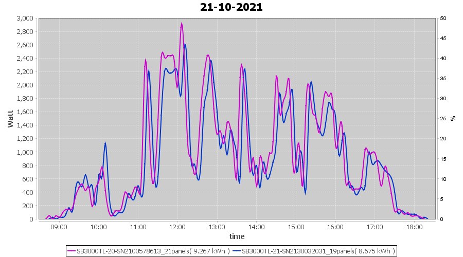 | 13-10-2021 | kWh | Sum | W/Wp | 18.220 | 6000 | 3.0 | 8.427 | € 6.55 | 2.9 |